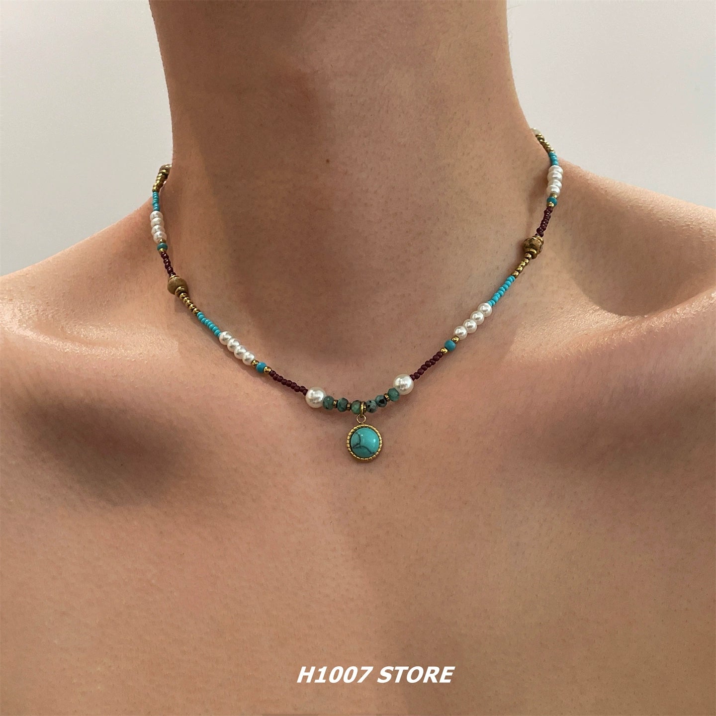 Beaded Turquoise Pendant Necklace