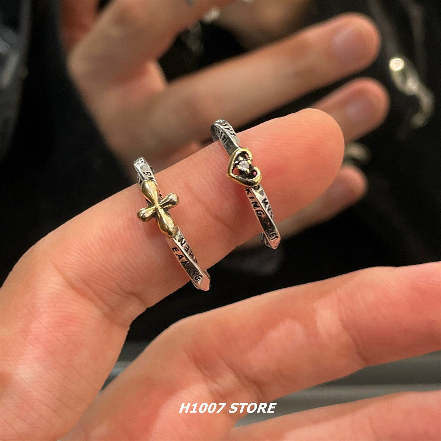Letter Engraved Cross Heart Ring