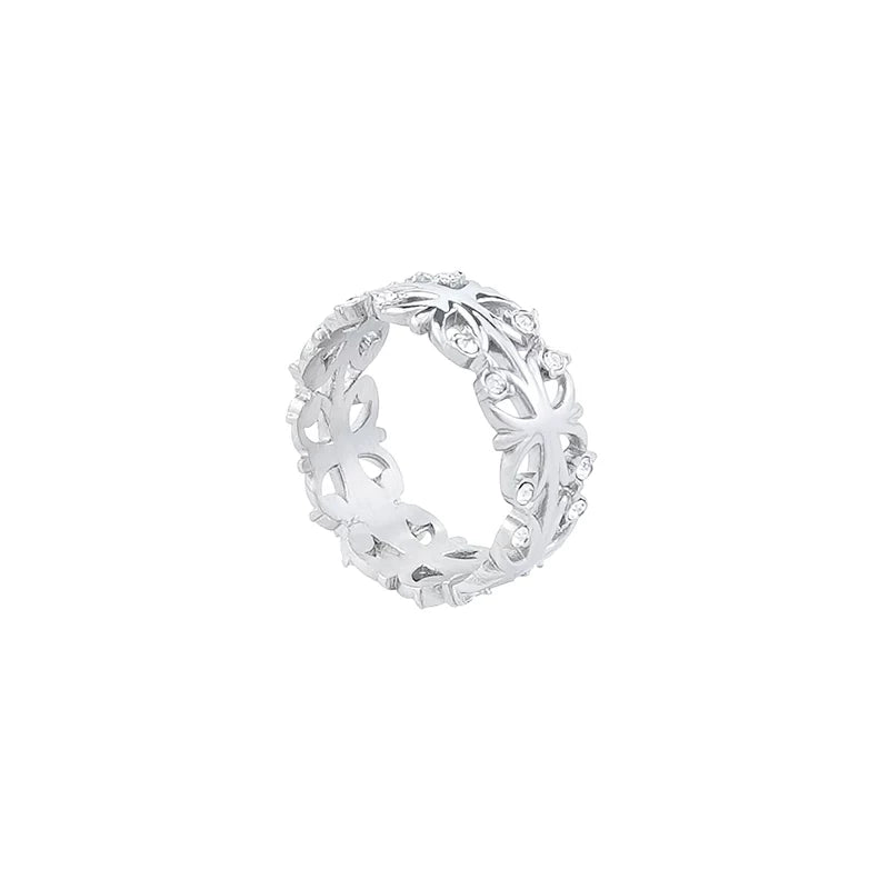 Openwork Iris Flower Diamond Inlay Ring