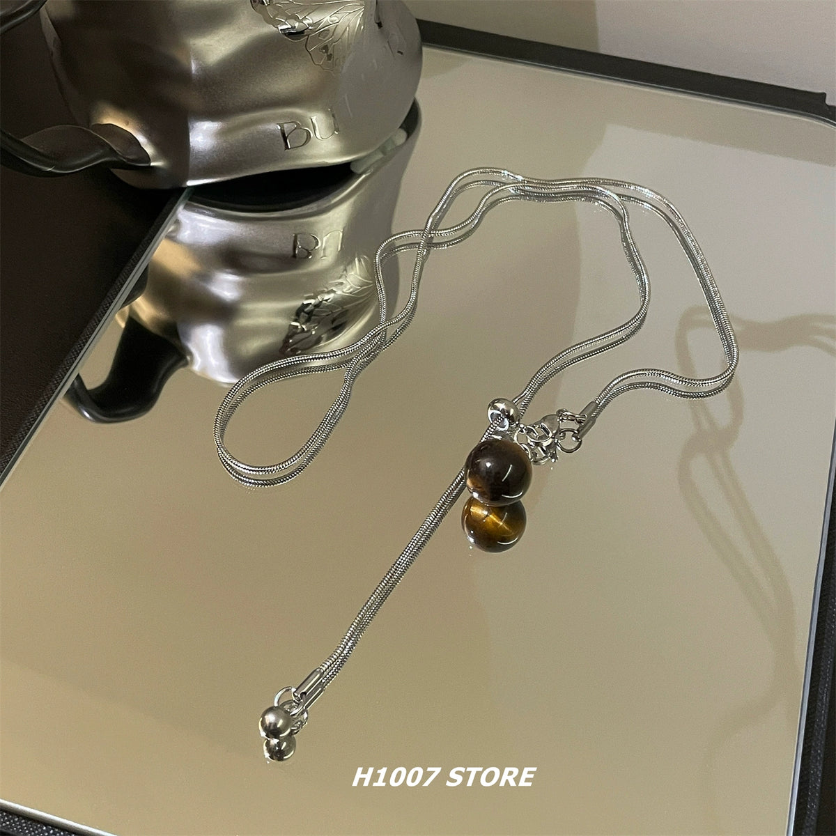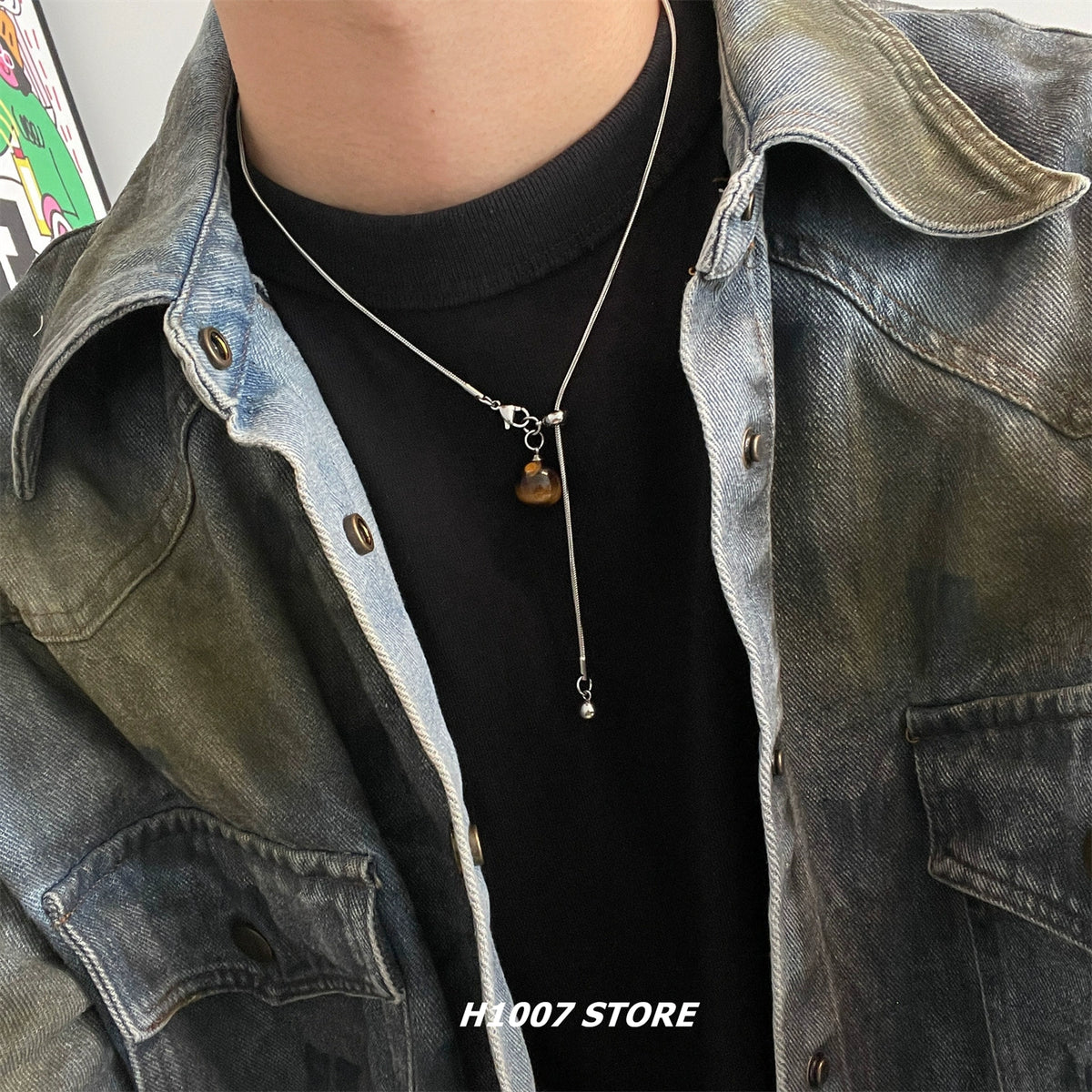 Tiger Eye Stone Drawstring Necklace