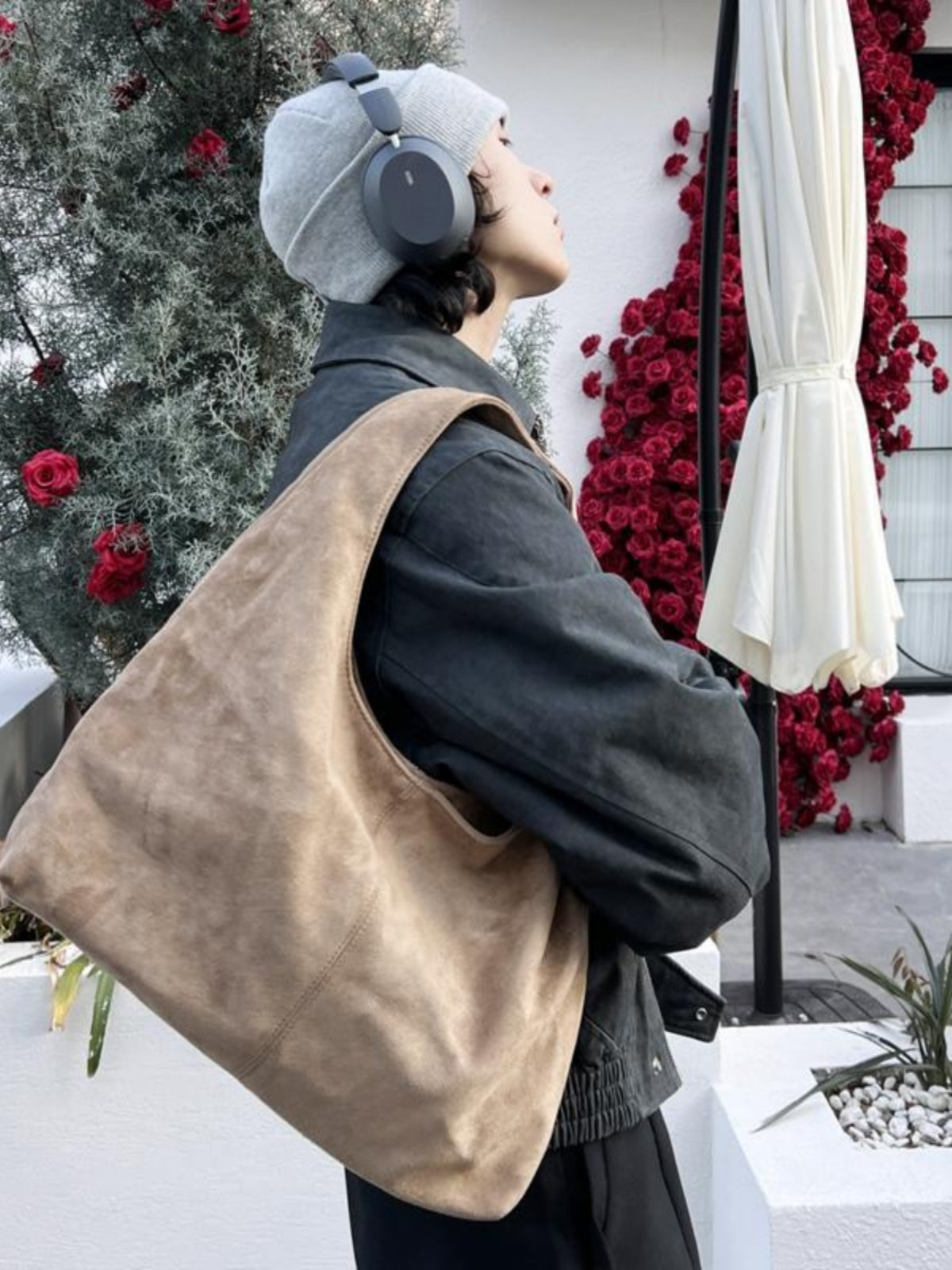 Minimalist Suede Bucket Shoulder Bag