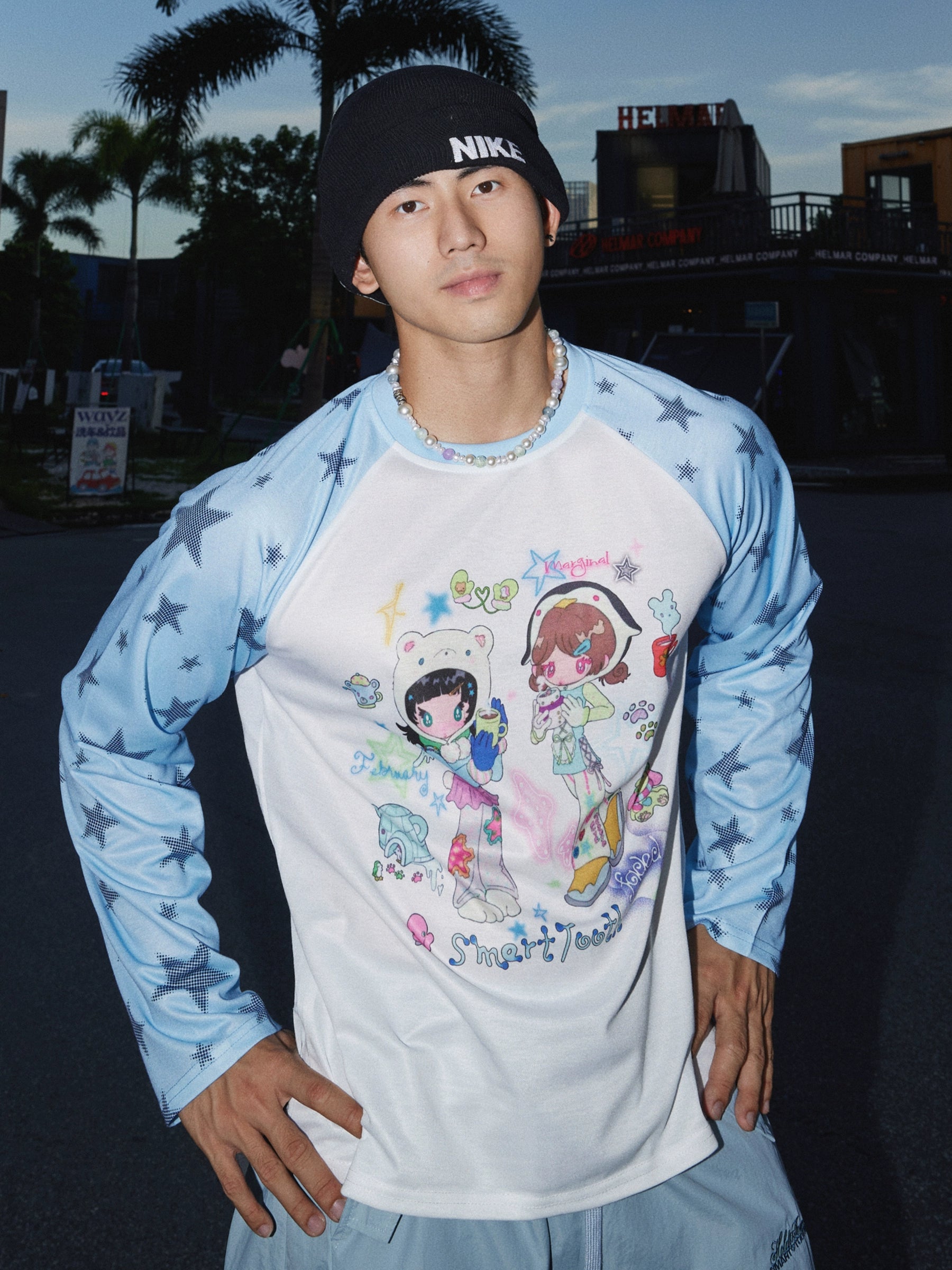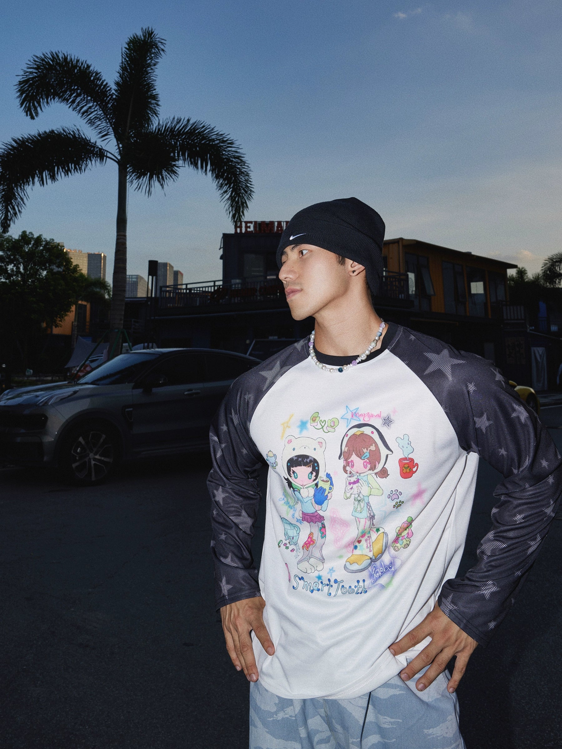 Cartoon Graphic Star Raglan Sleeve Pullover