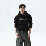 Embroidered Letter Drawstring Hooded Sweatshirt