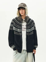 Fair Isle Hooded Cardigan Sweater
