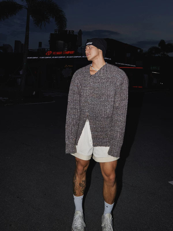 Zip-Up Textured Knit Sweater