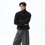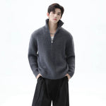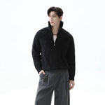 Stand Collar Half-Zip Fleece Knit Sweater