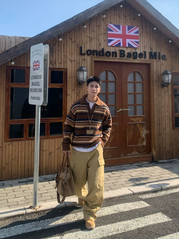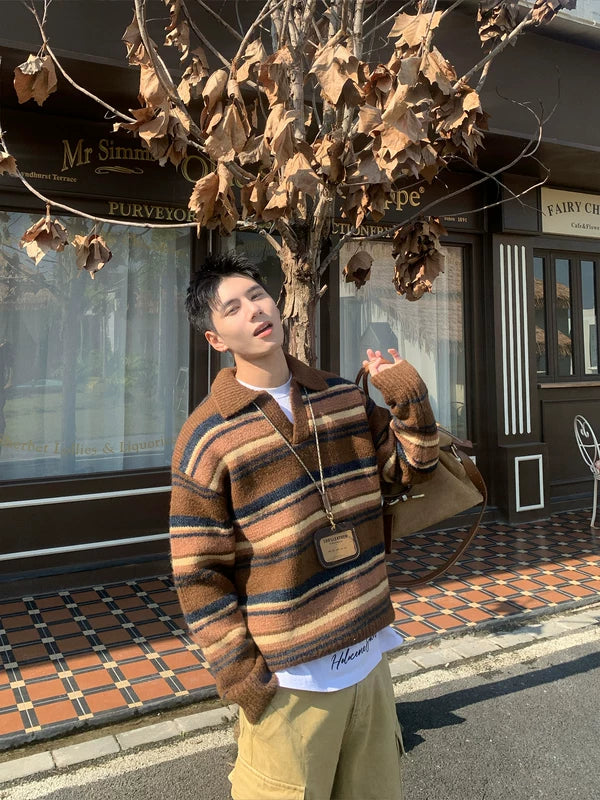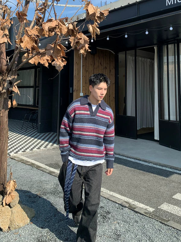 Striped Polo Collar Knit Sweater