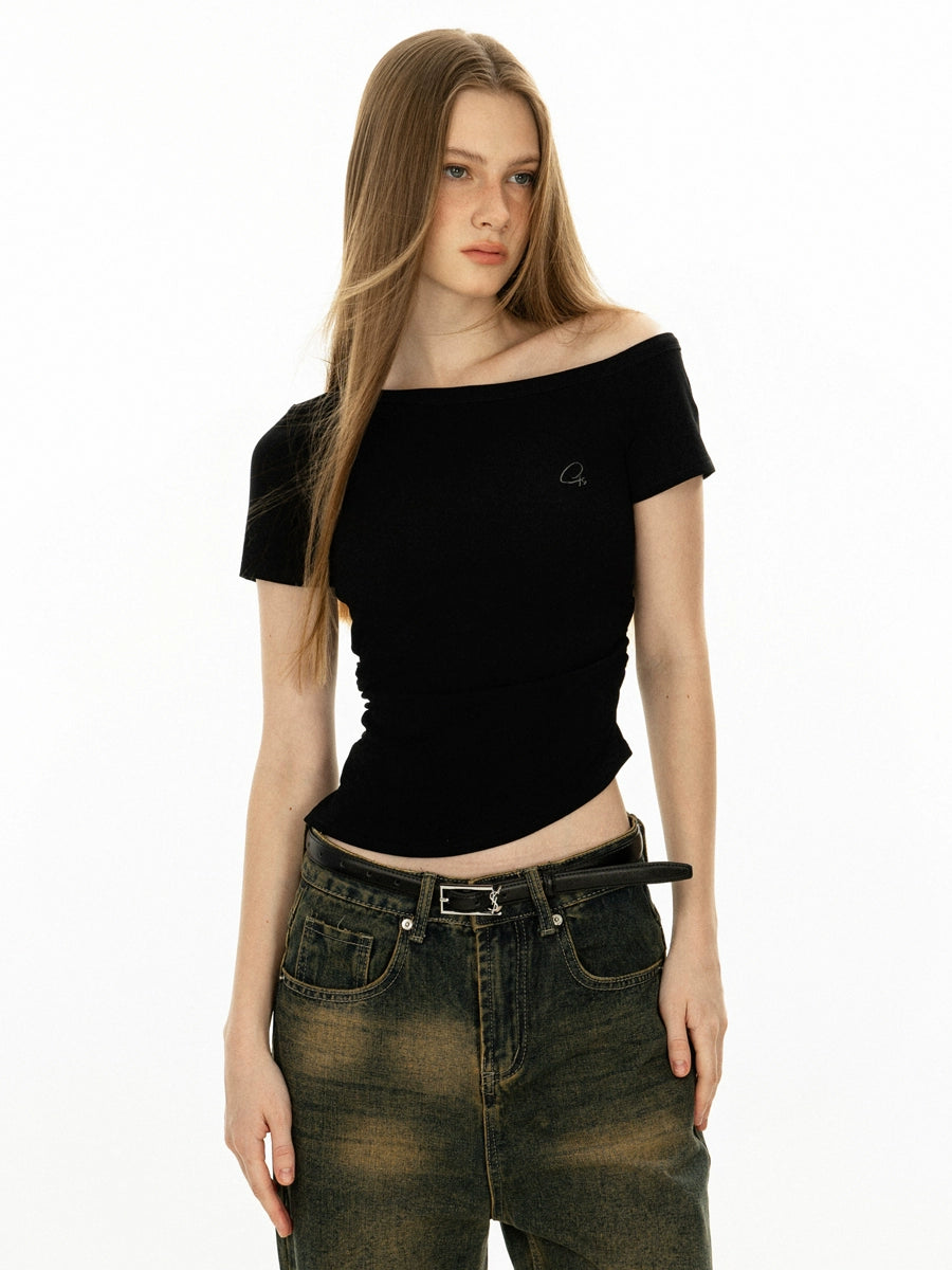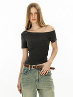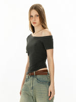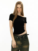 Oblique Shoulder Slim Fit Short Sleeve Top