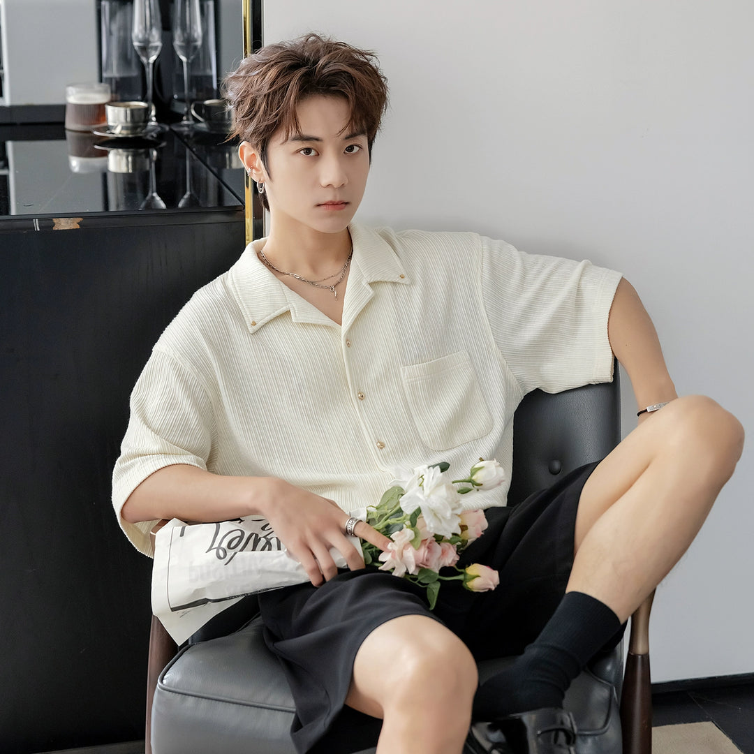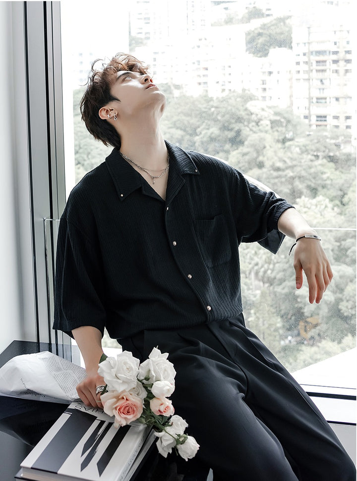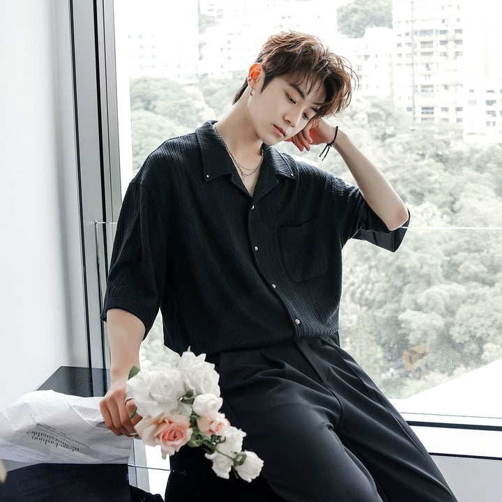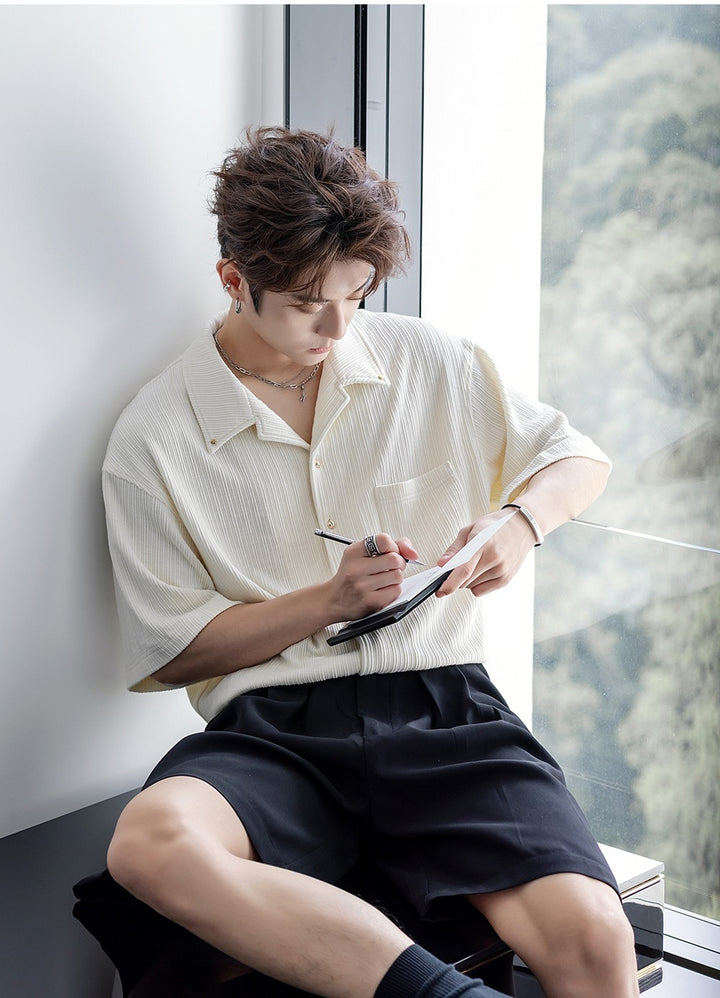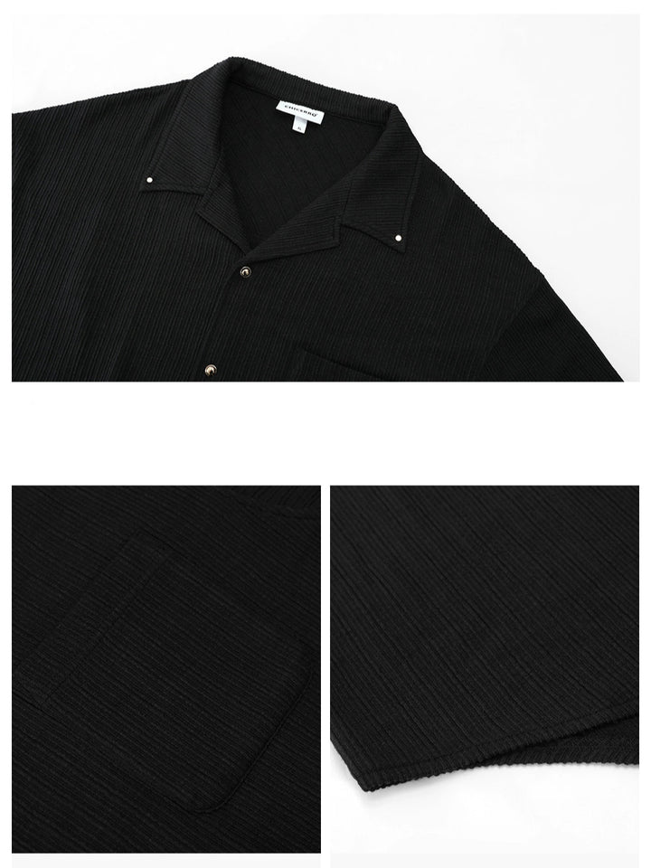 Bronze Button Cuban Collar Short Sleeve Shirt