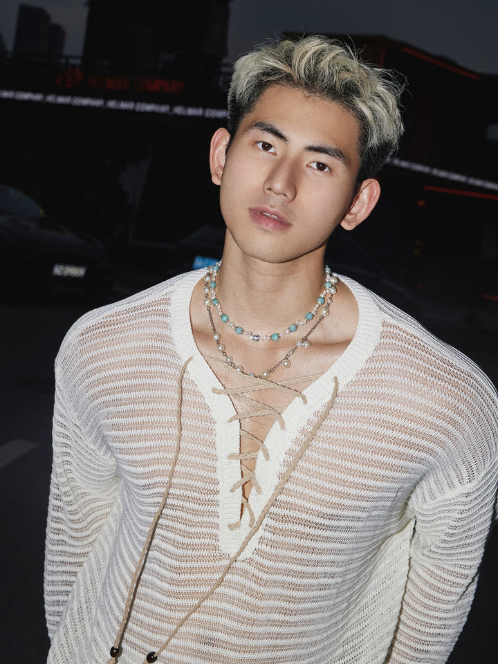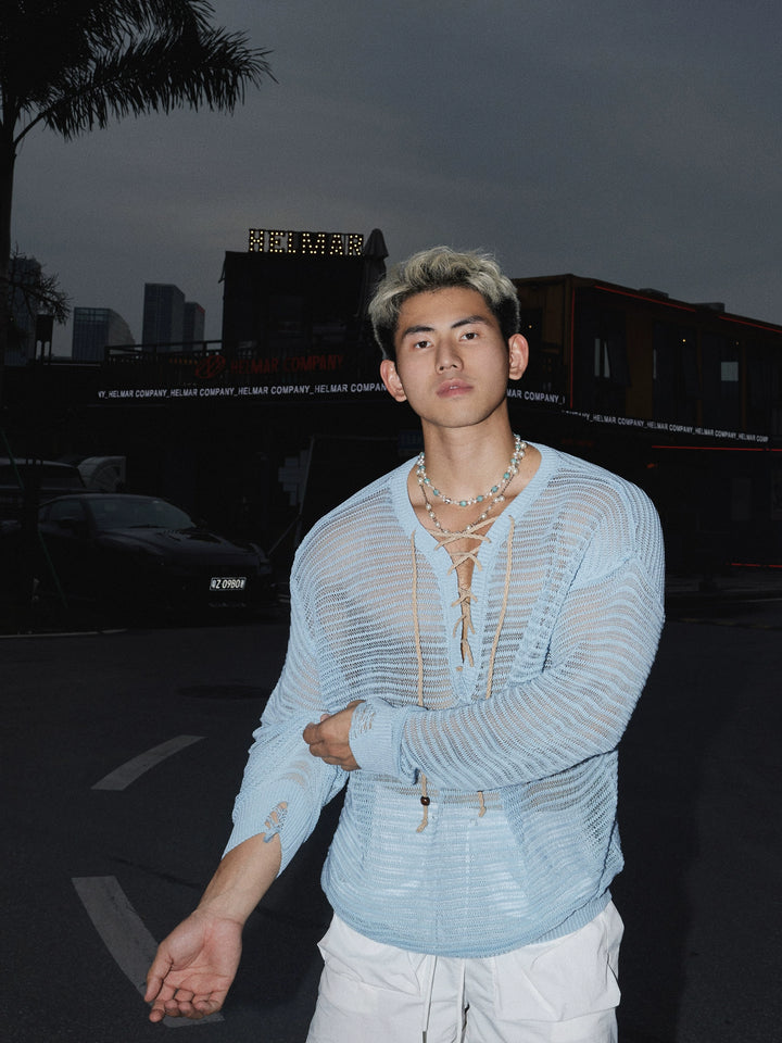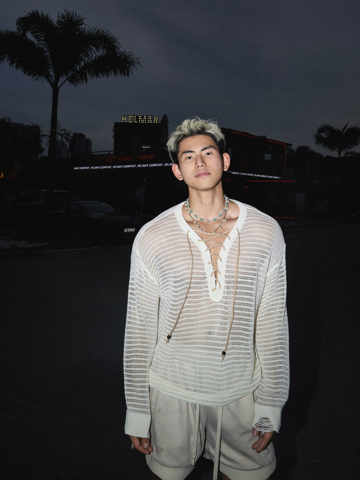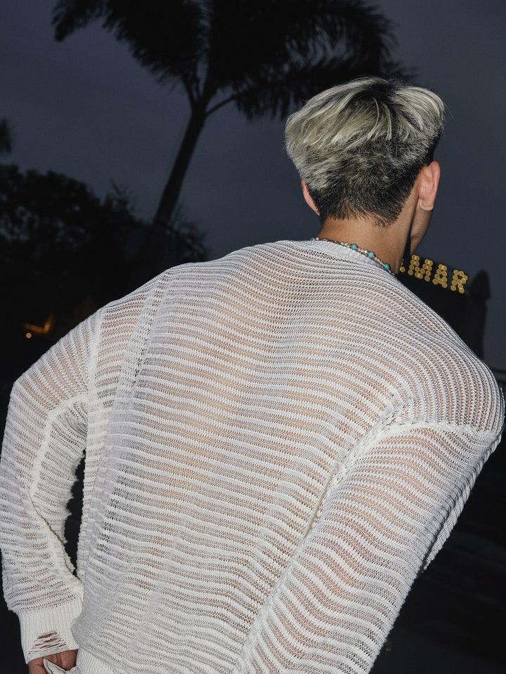 Loose Knit Hollow Long Sleeve Pullover