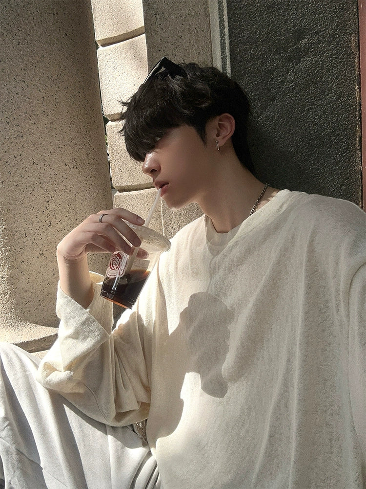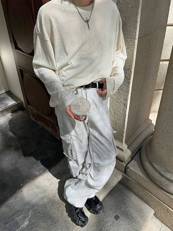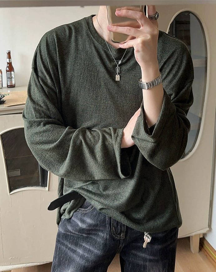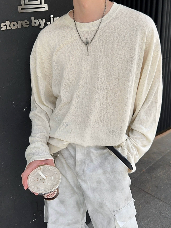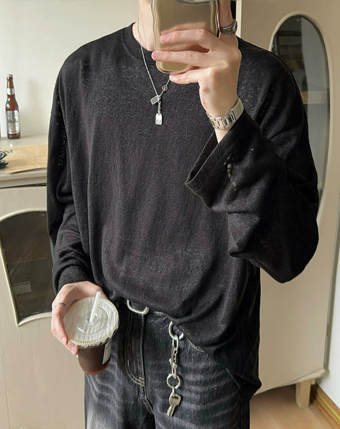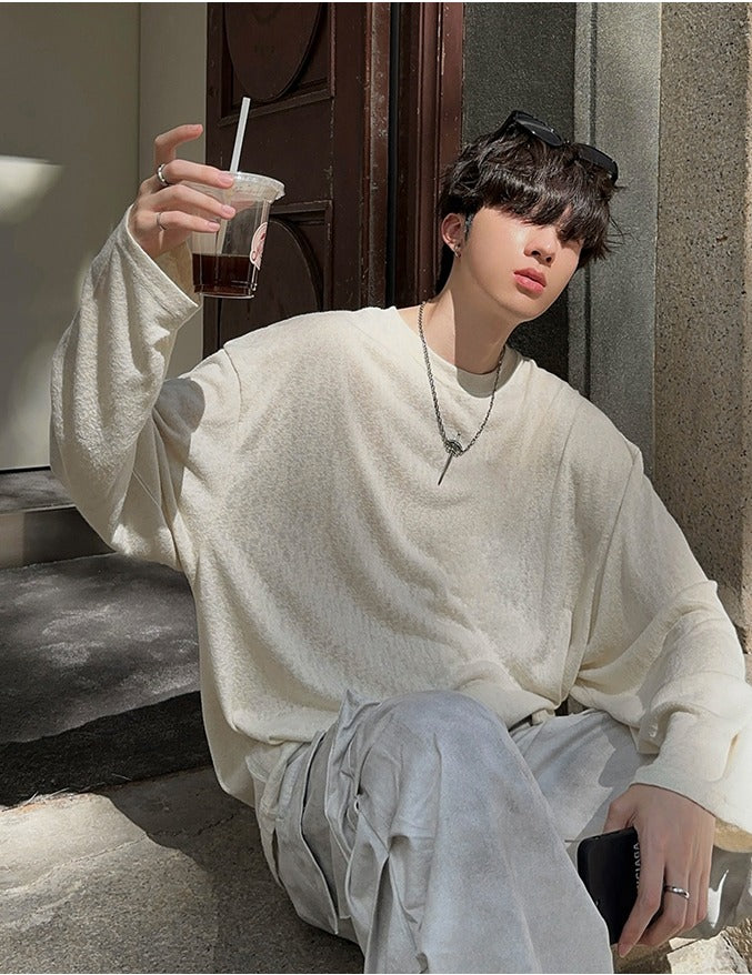 Loose Fit Textured Long Sleeve Pullover