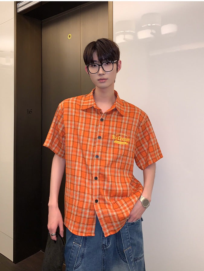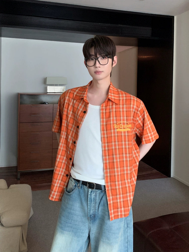 Loose Fit Short Sleeve Plaid Shirt