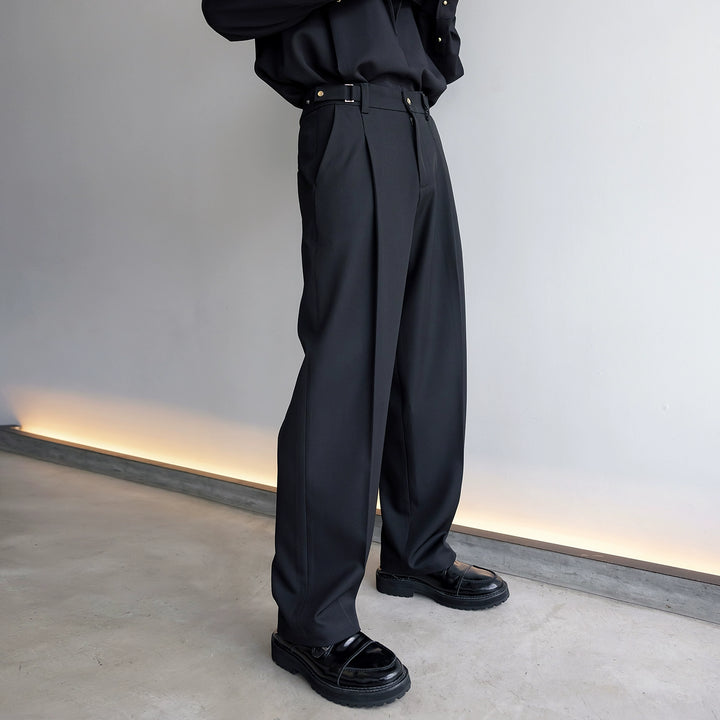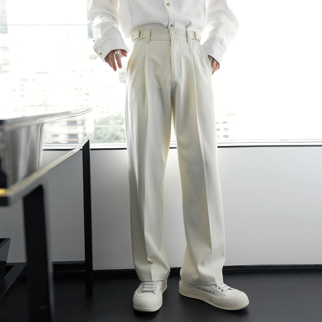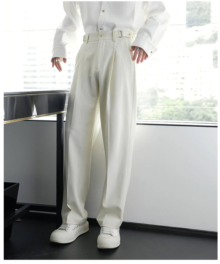 Alloy Buckle Straight Loose Wide-Leg Pants