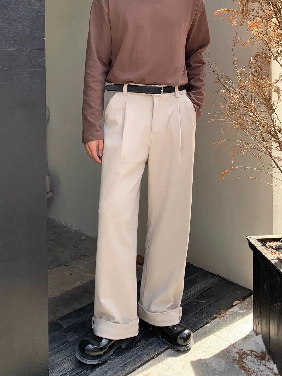 Drape Wide-Leg Pleated Pants