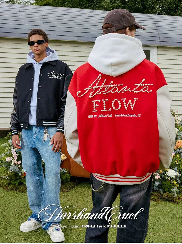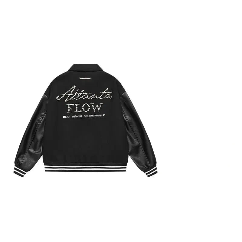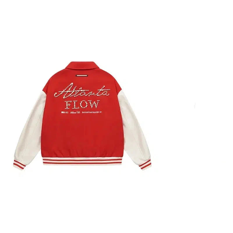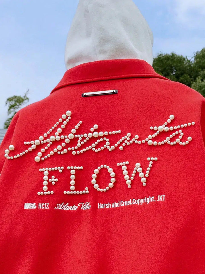 Pearl Embellished Embroidered Lapel Baseball Jacket