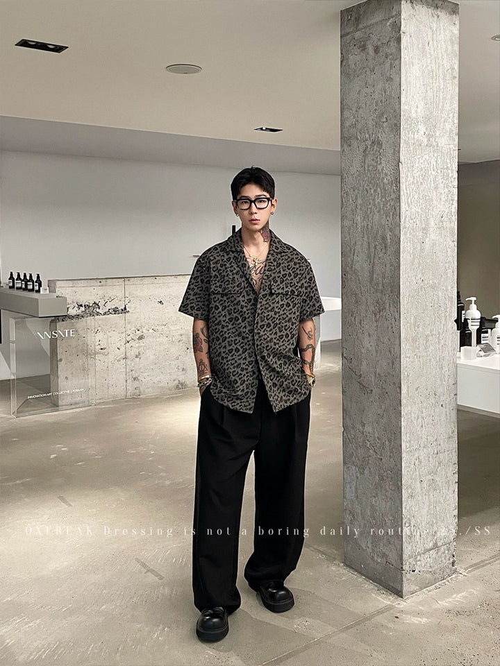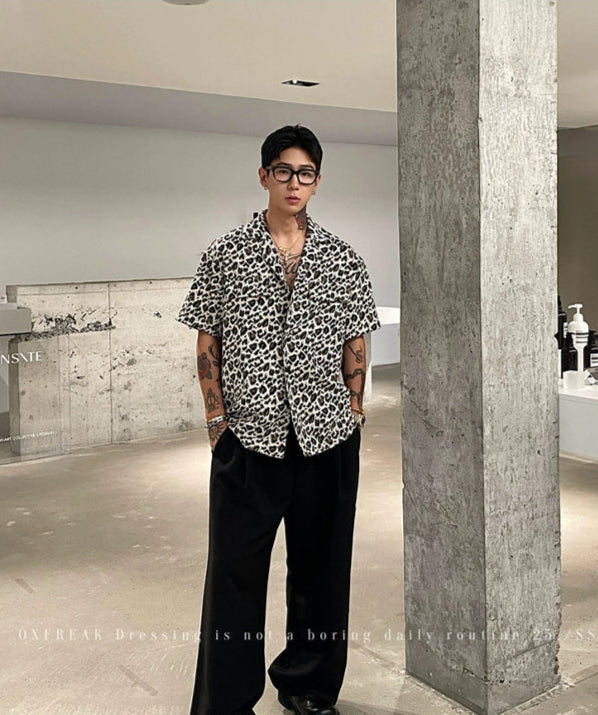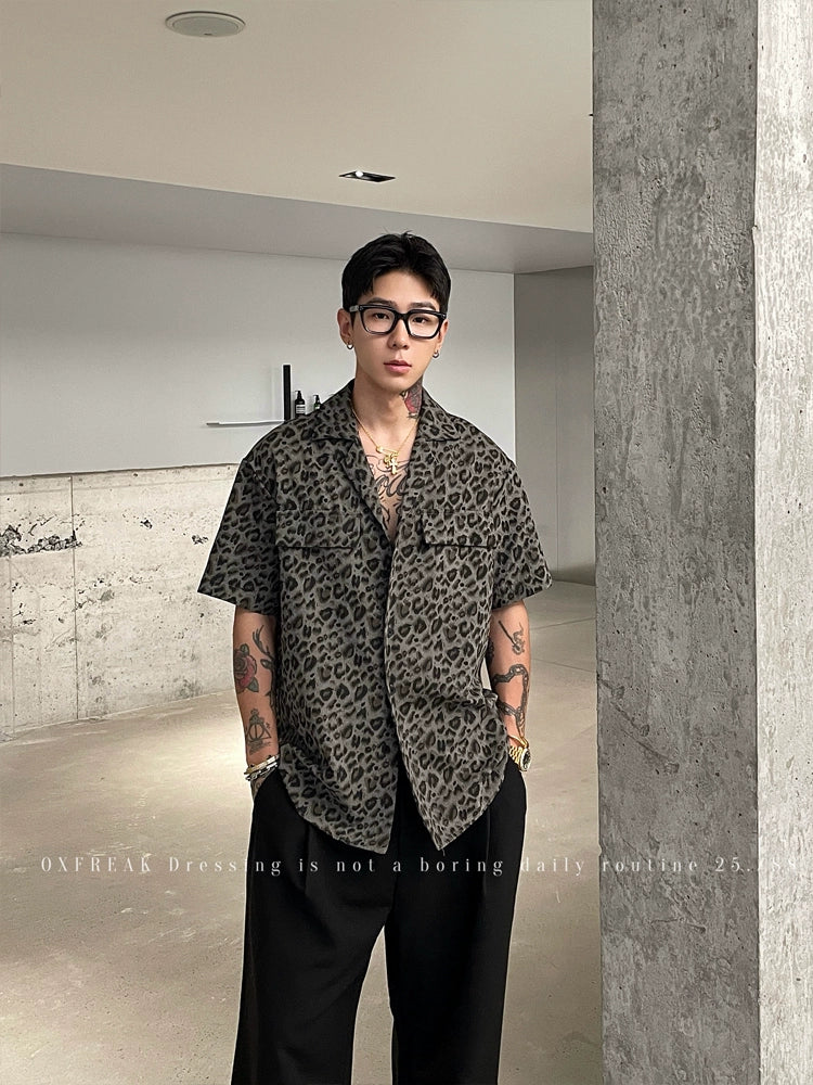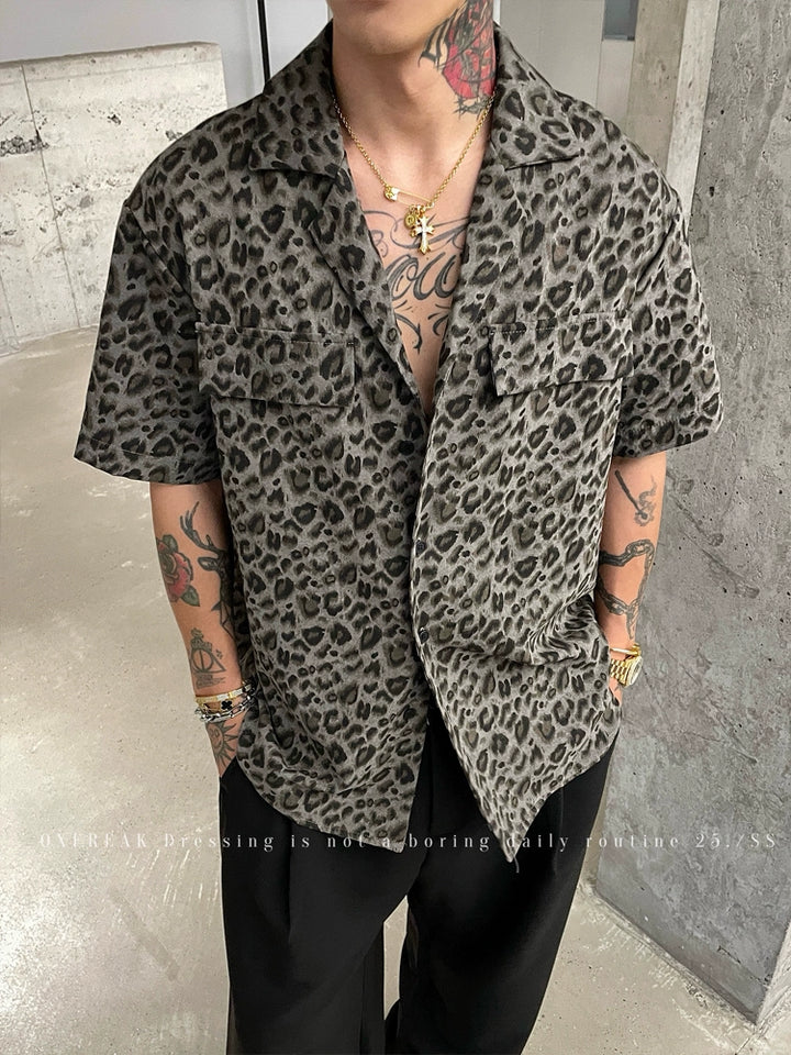 Leopard Print Cuban Collar Short Sleeve Shirt