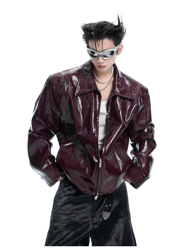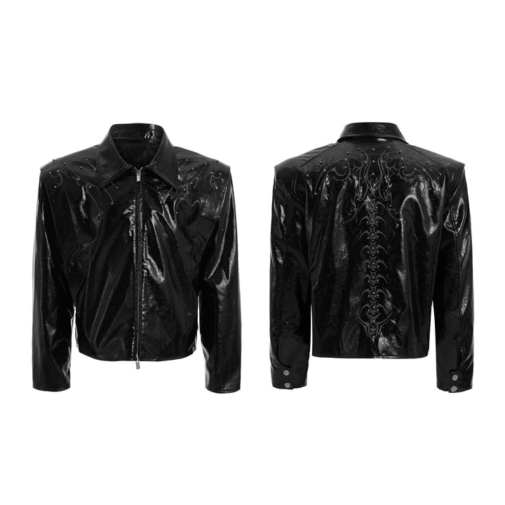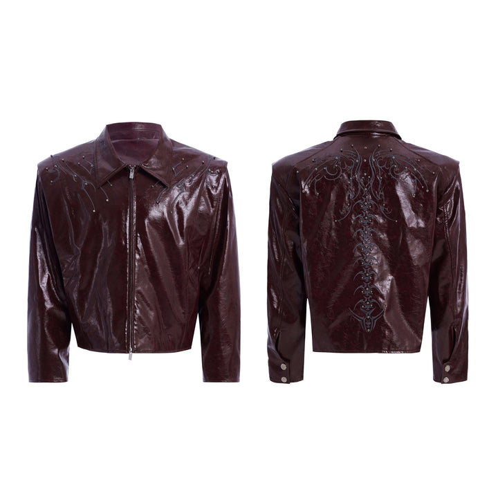 Rivet Embroidery Leather Jacket
