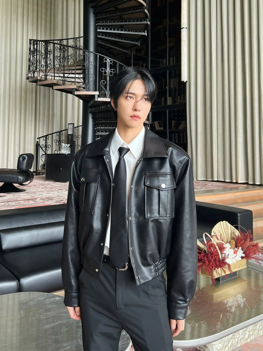 Padded Shoulder Leather Biker Jacket