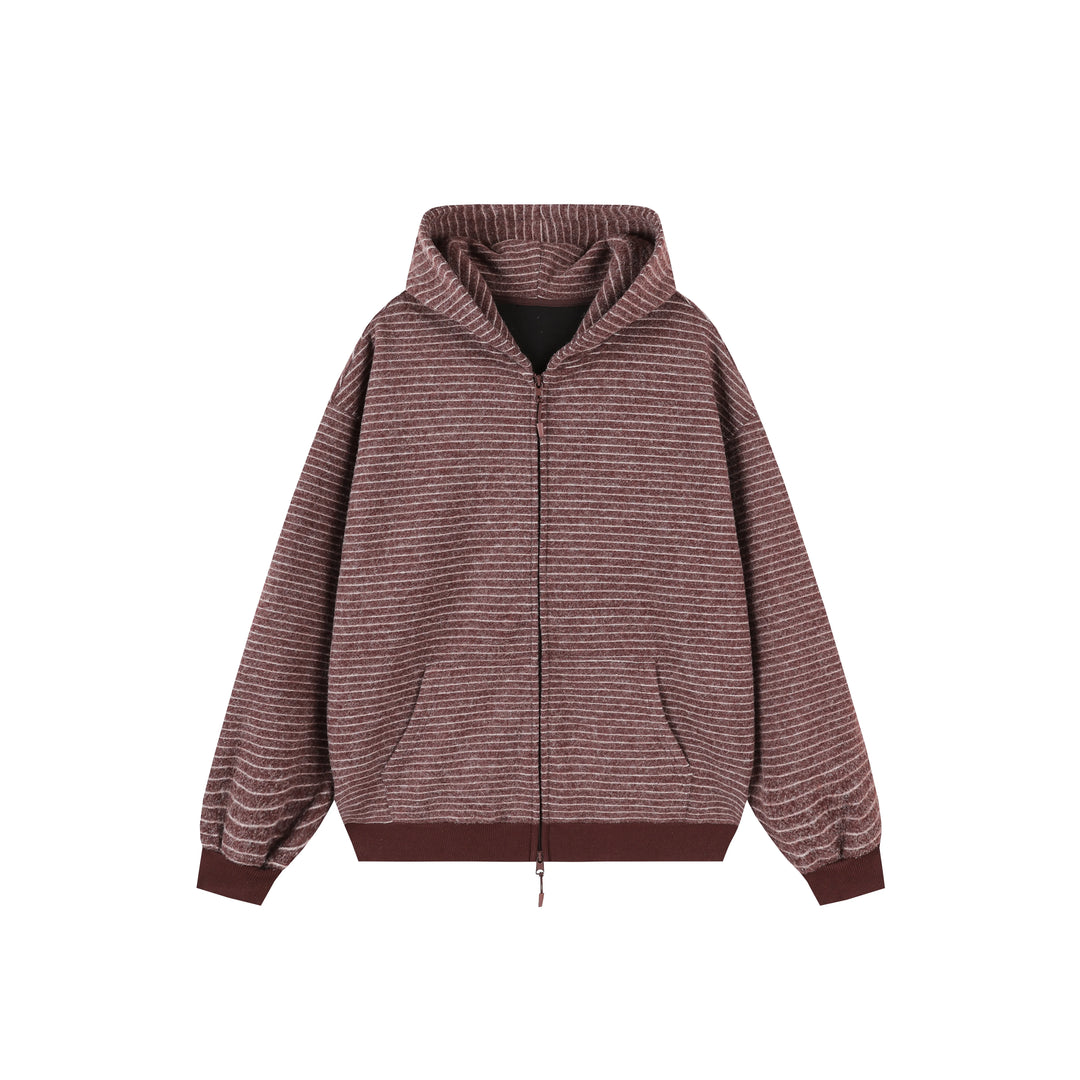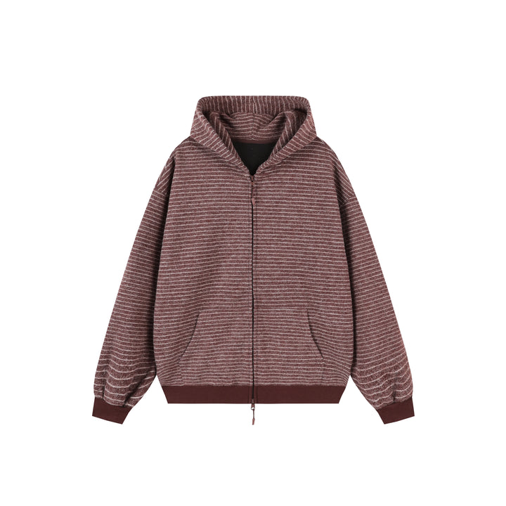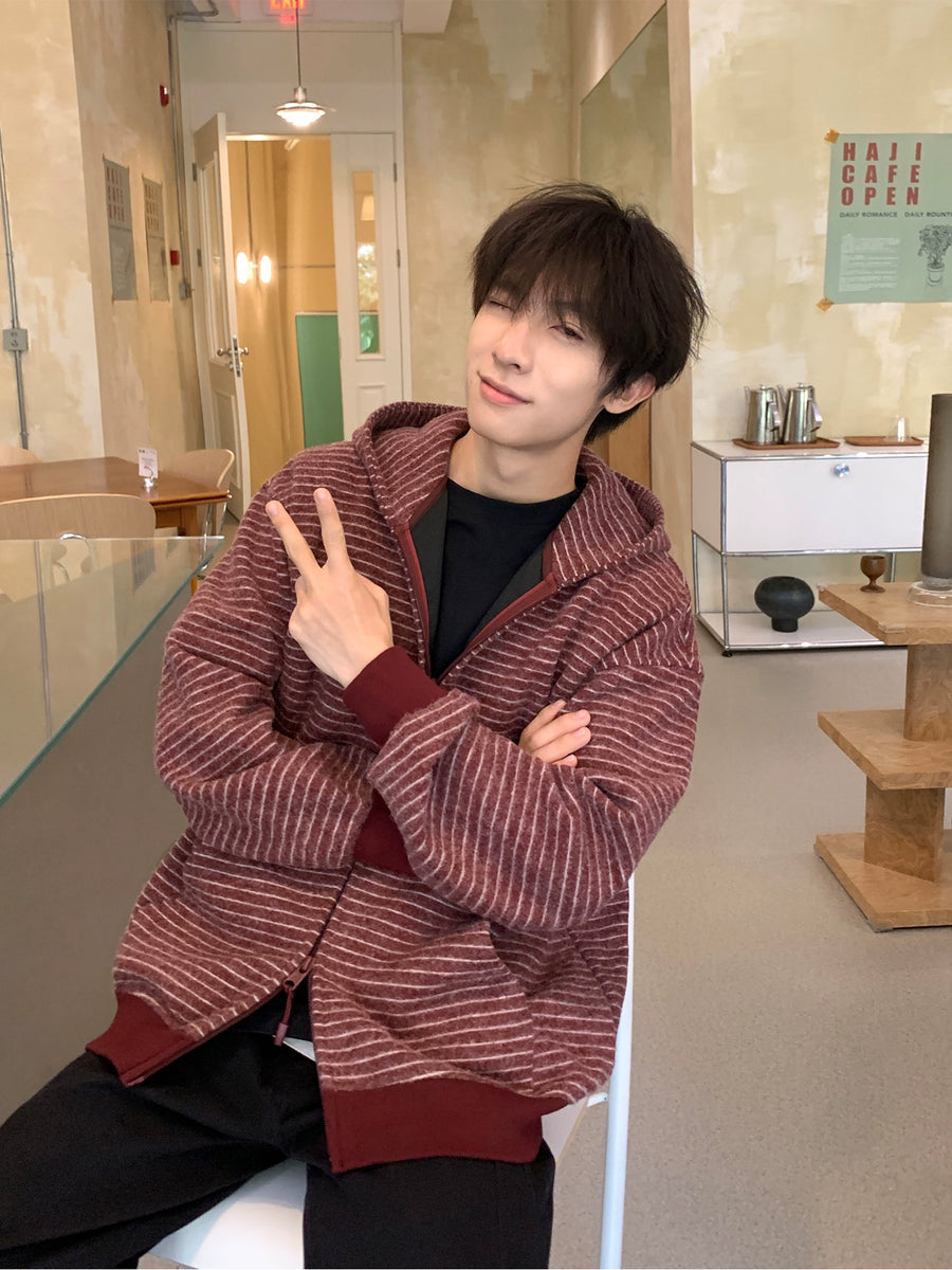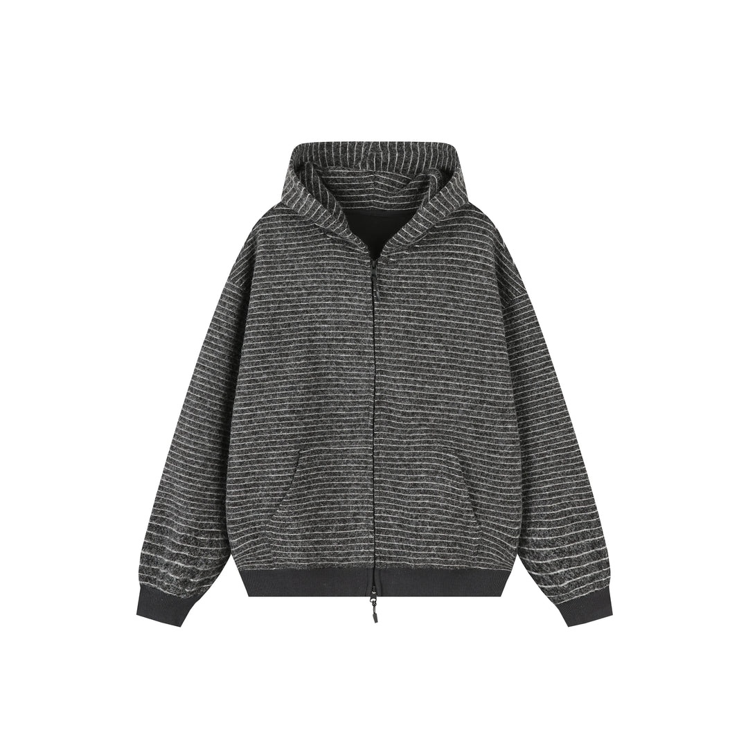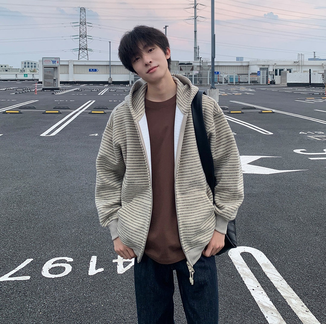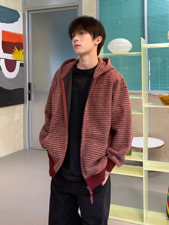 Striped Hooded Zipper Cardigan