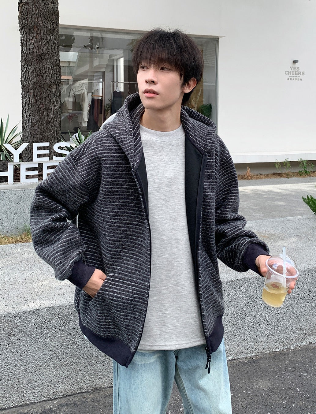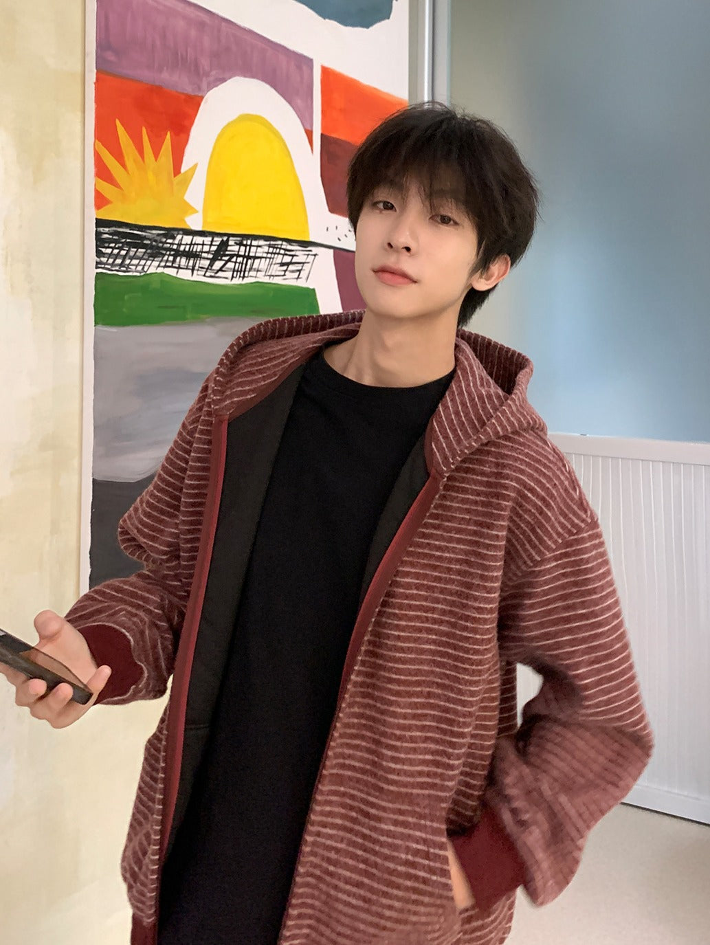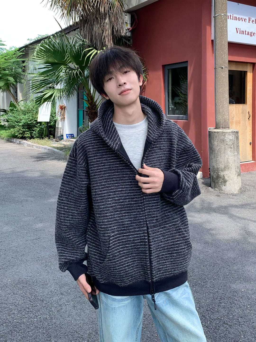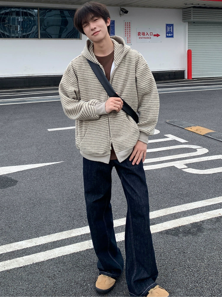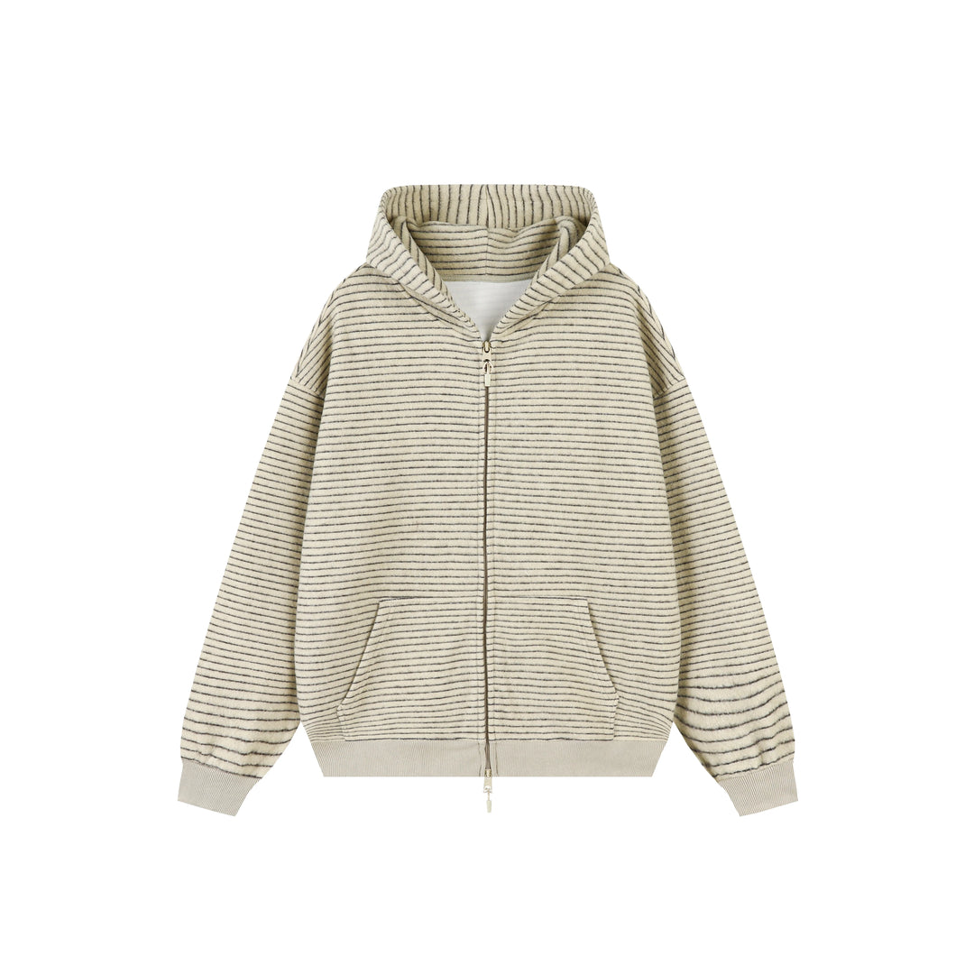 Striped Hooded Zipper Cardigan