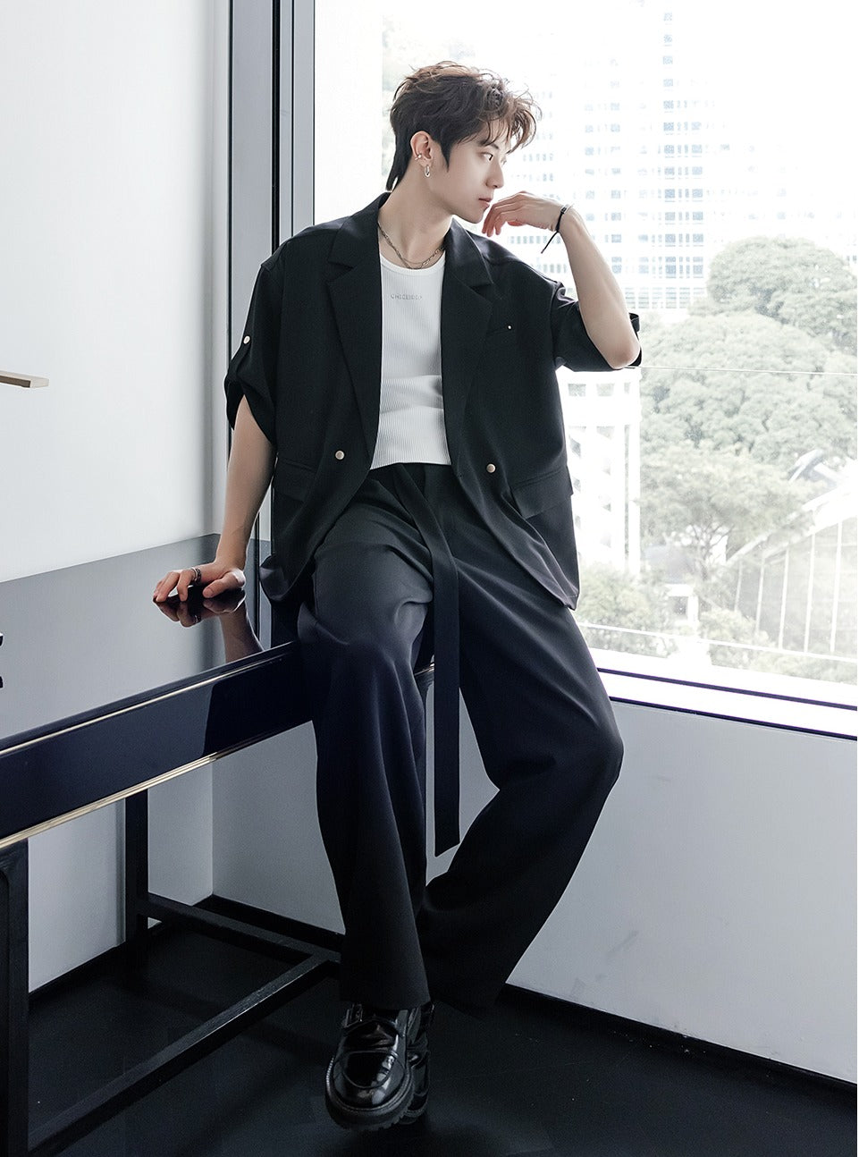 179 cm / 5'10" 60 kg / 132 lbs Top: XL, Pants: M