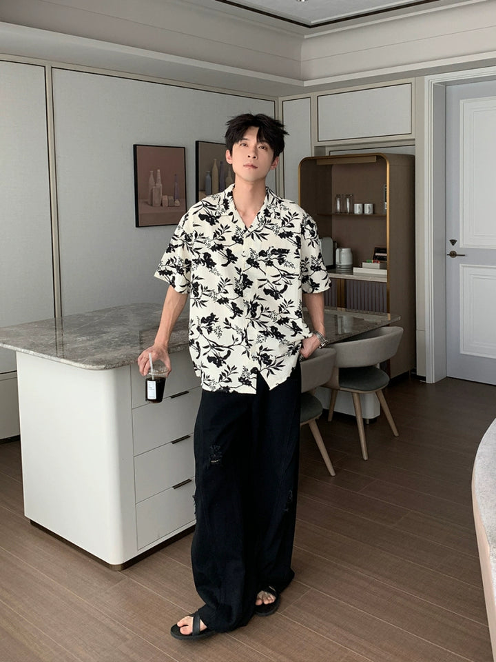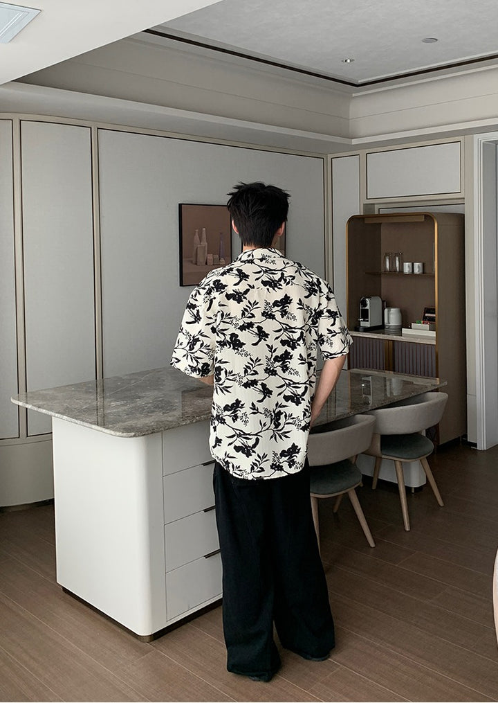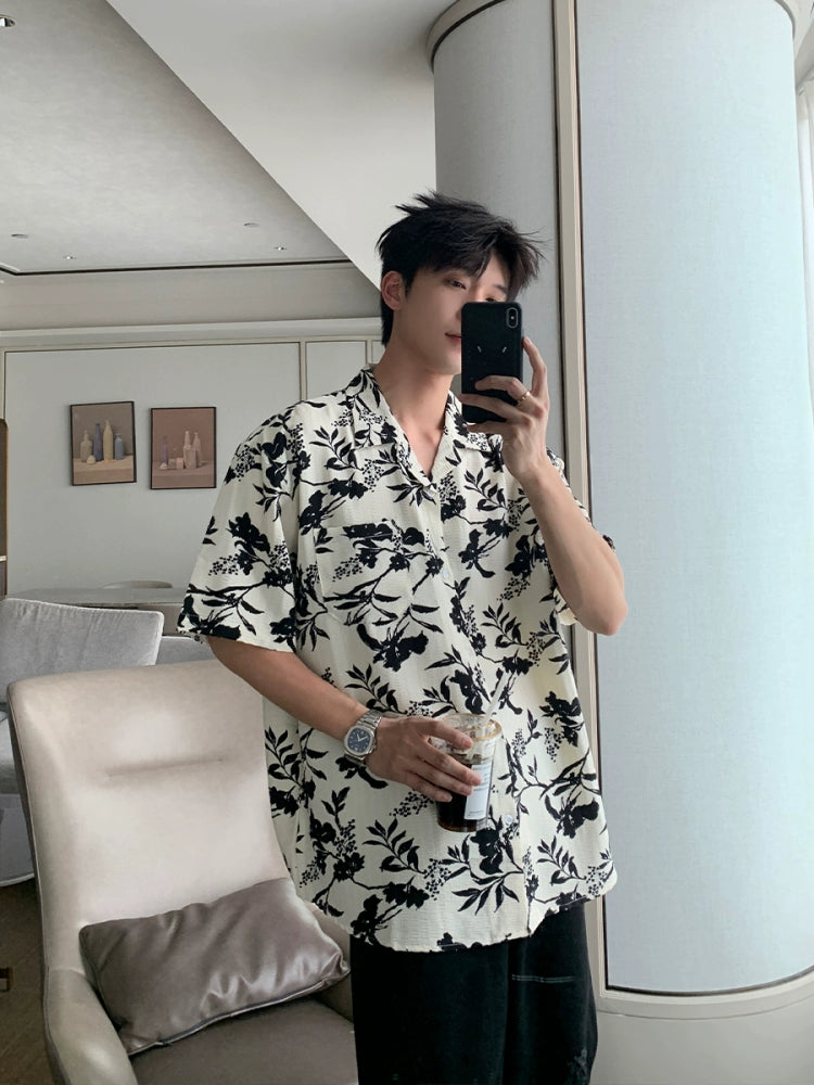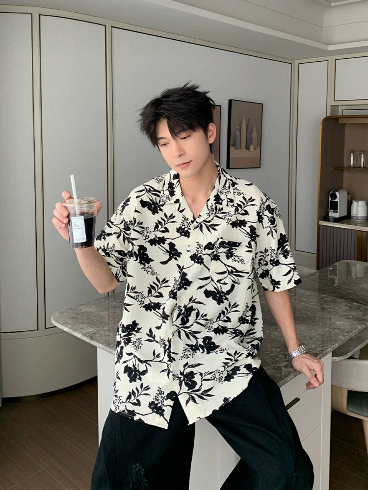 Cuban Collar Short Sleeve Floral Shirt