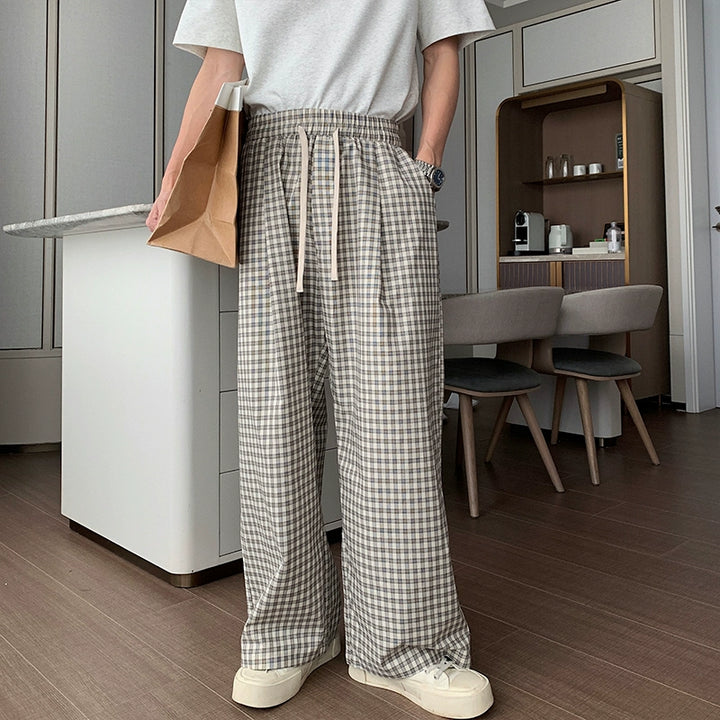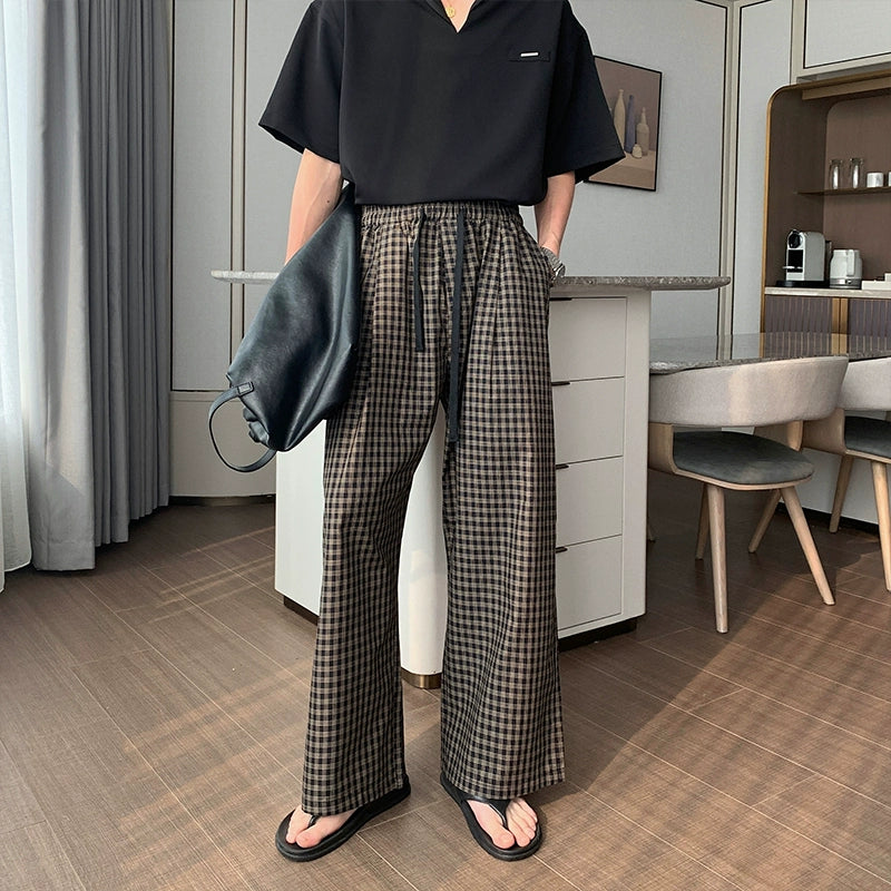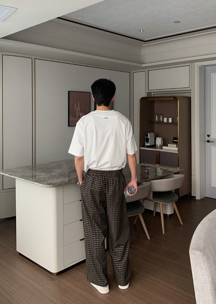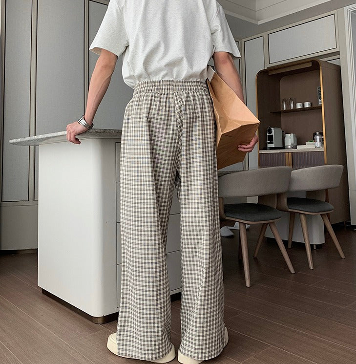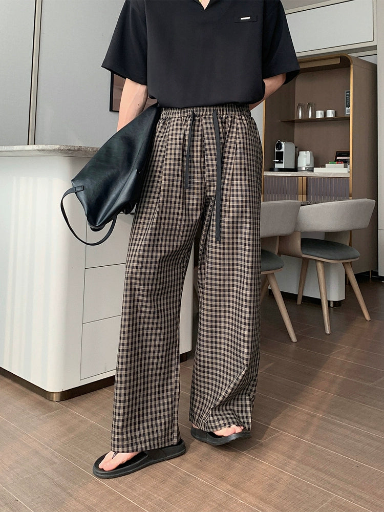 Cotton Wide-Leg Plaid Pants