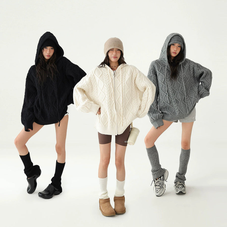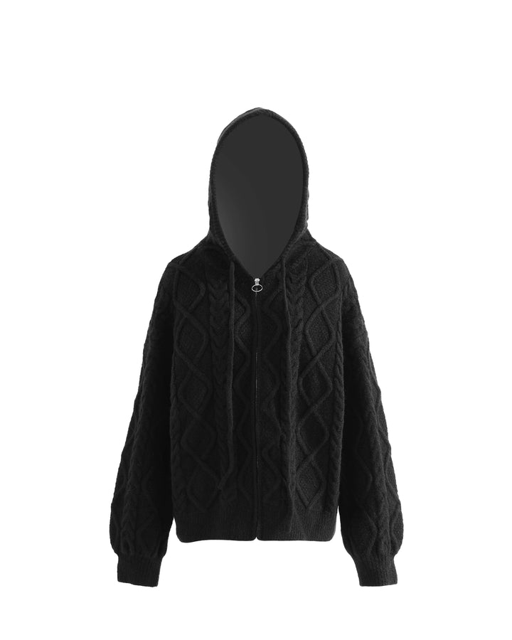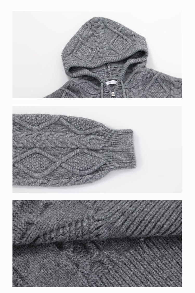 Cable Knit Hooded Zipper Sweater