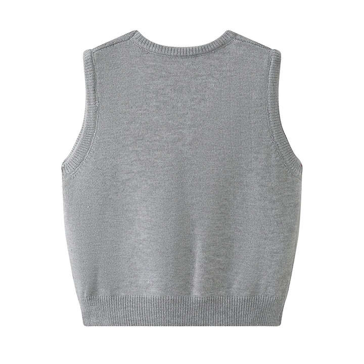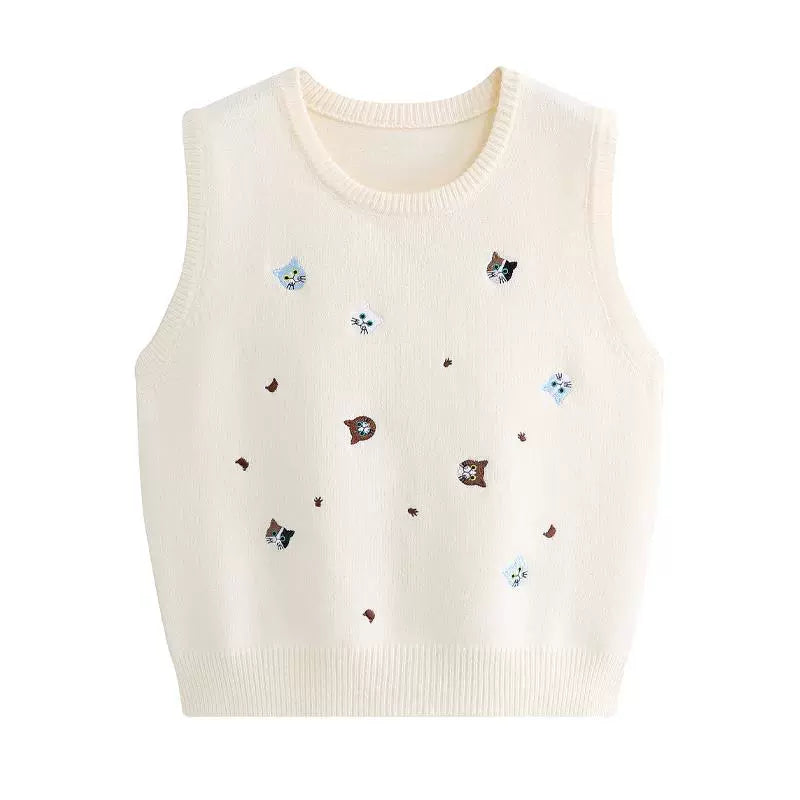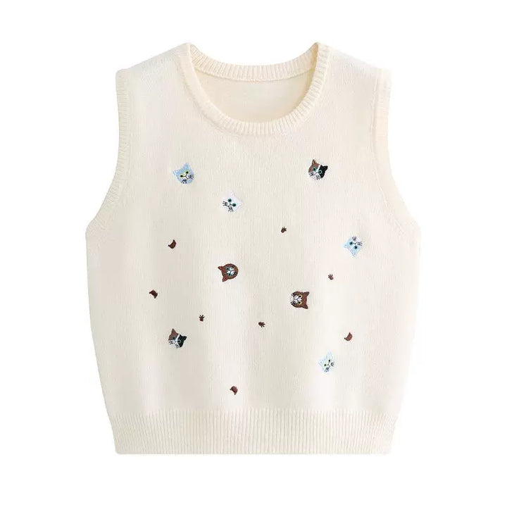 Embroidered Knit Round Neck Vest