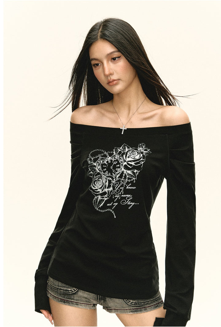 Off Shoulder Retro Graphic Top