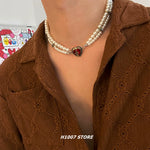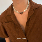 Imitation Pearl Layered Heart Pendant Necklace
