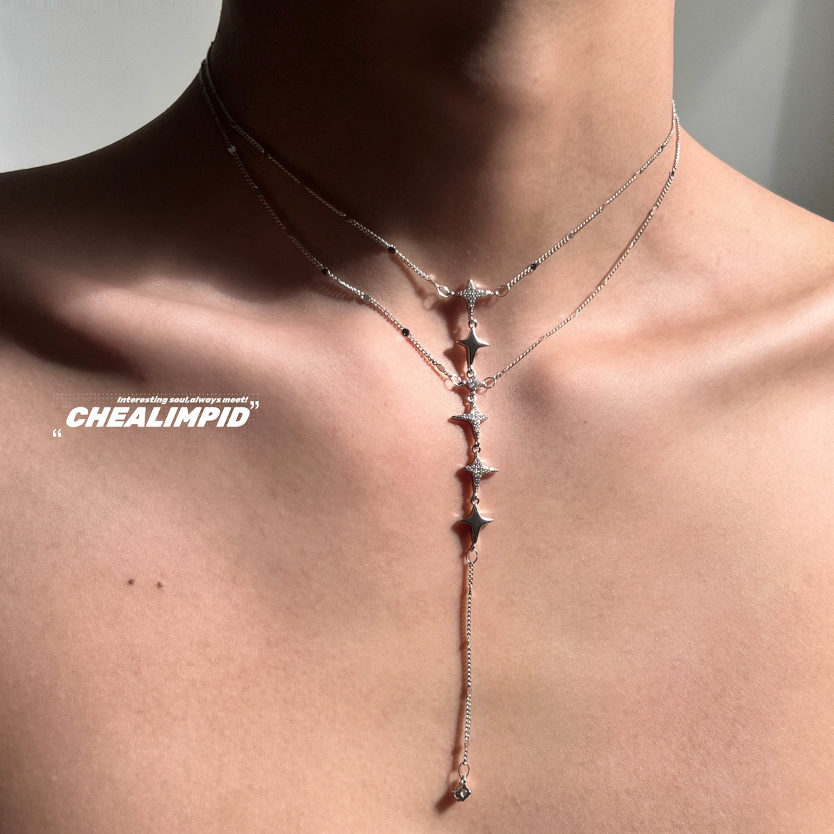 Layered Fishbone Star Tassel Necklace