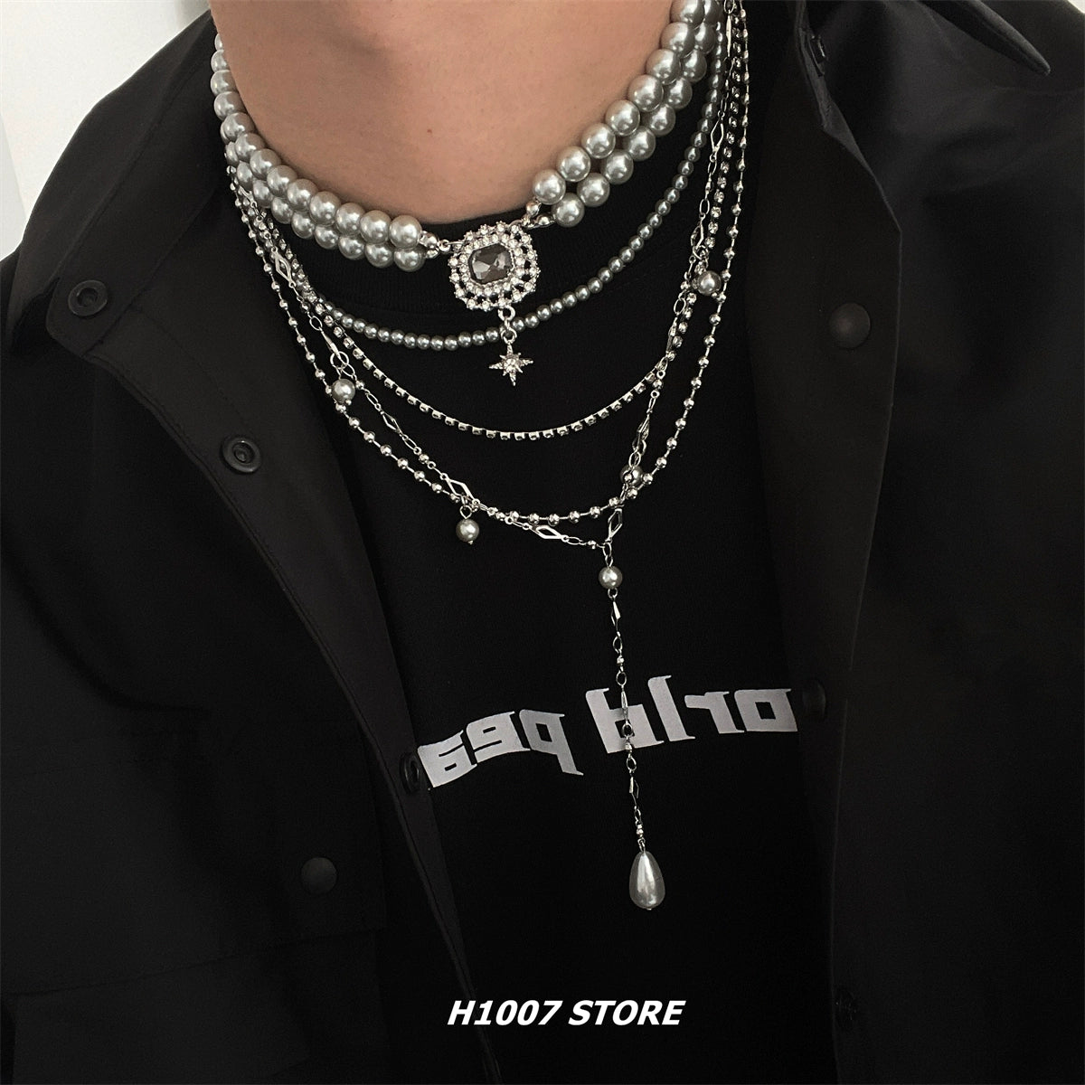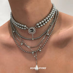Pearl Zircon Multi-Layered Tassel Necklace