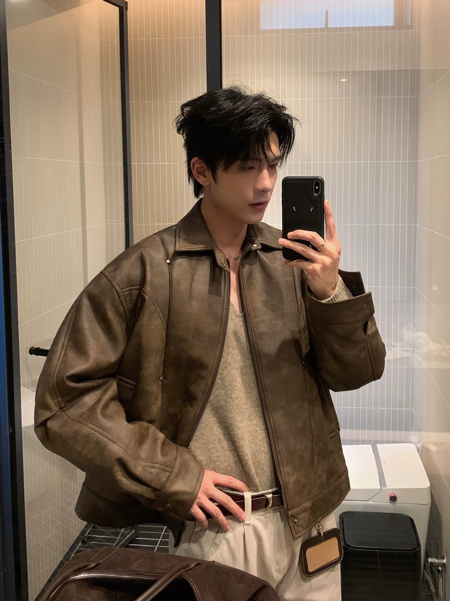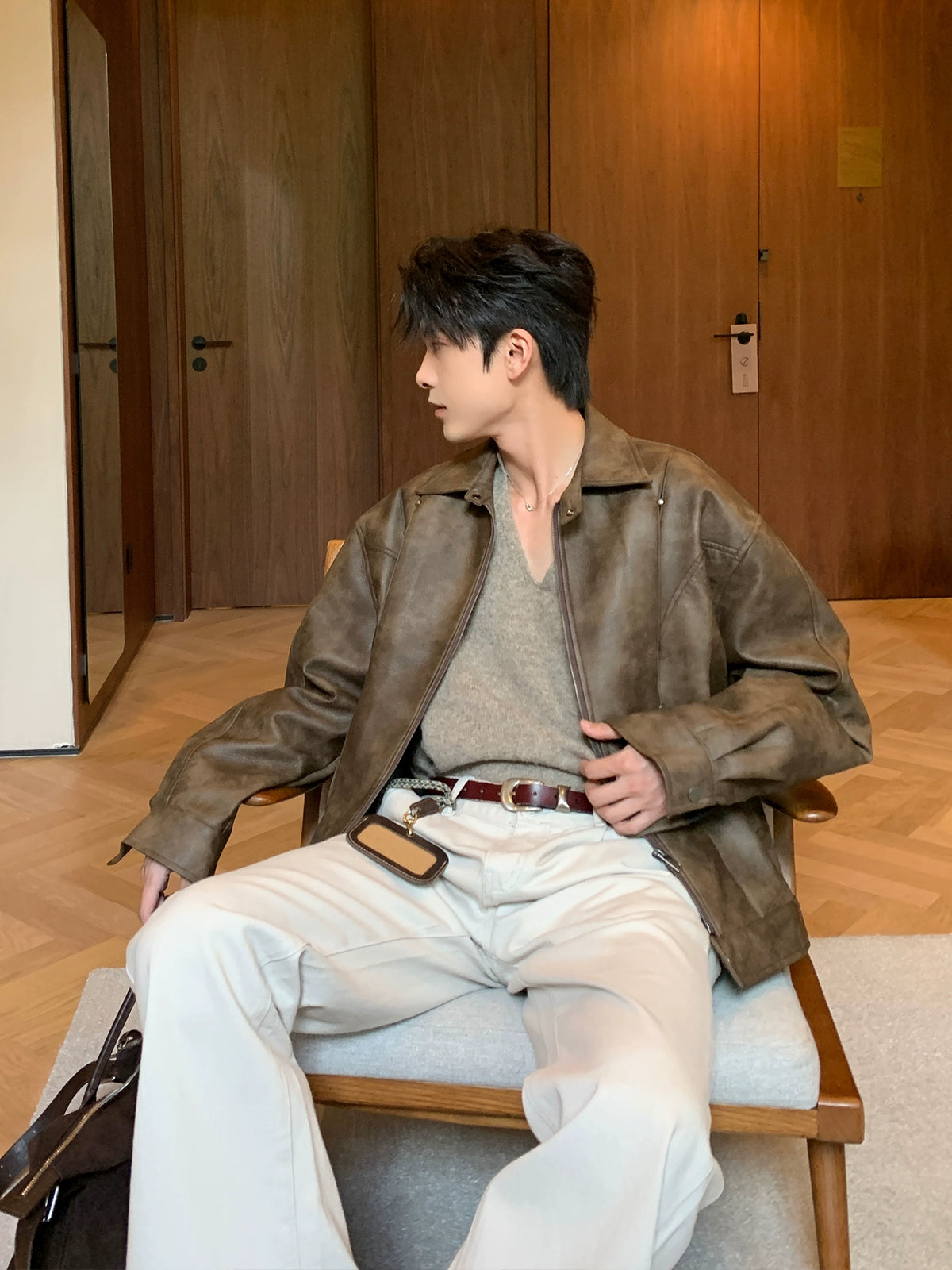 Oversized Lychee Leather Jacket