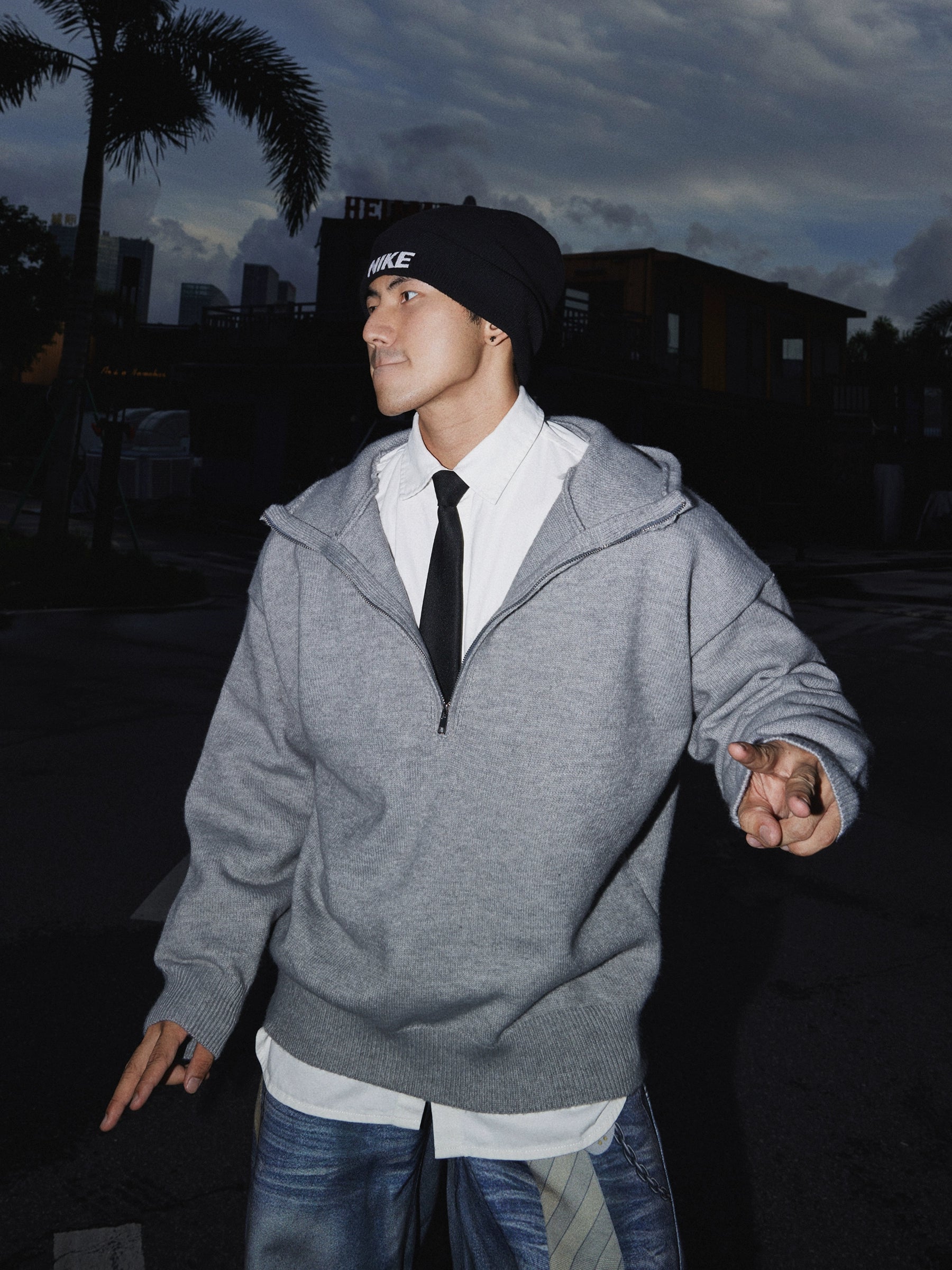 Half-Zip Hooded Sweatshirt Jacket