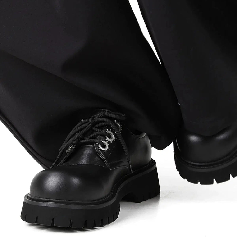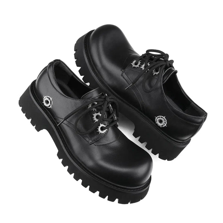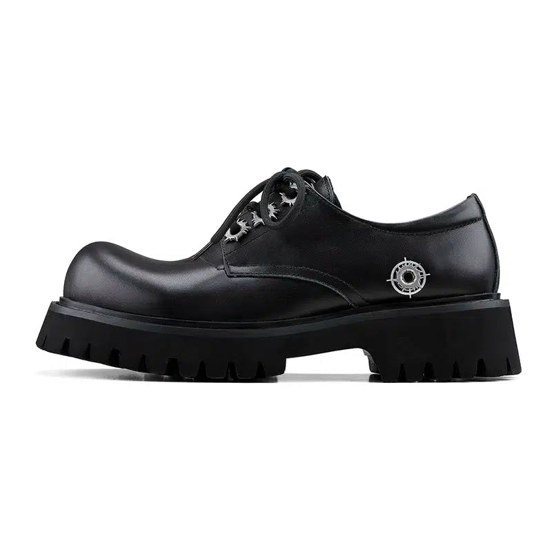 Thick Sole Round Toe Leather Derby Shoes