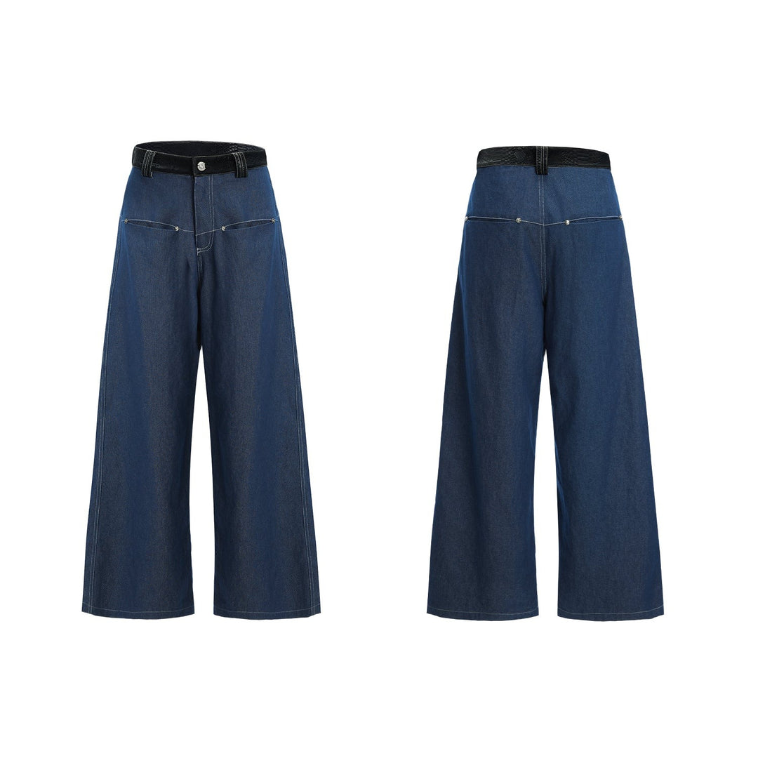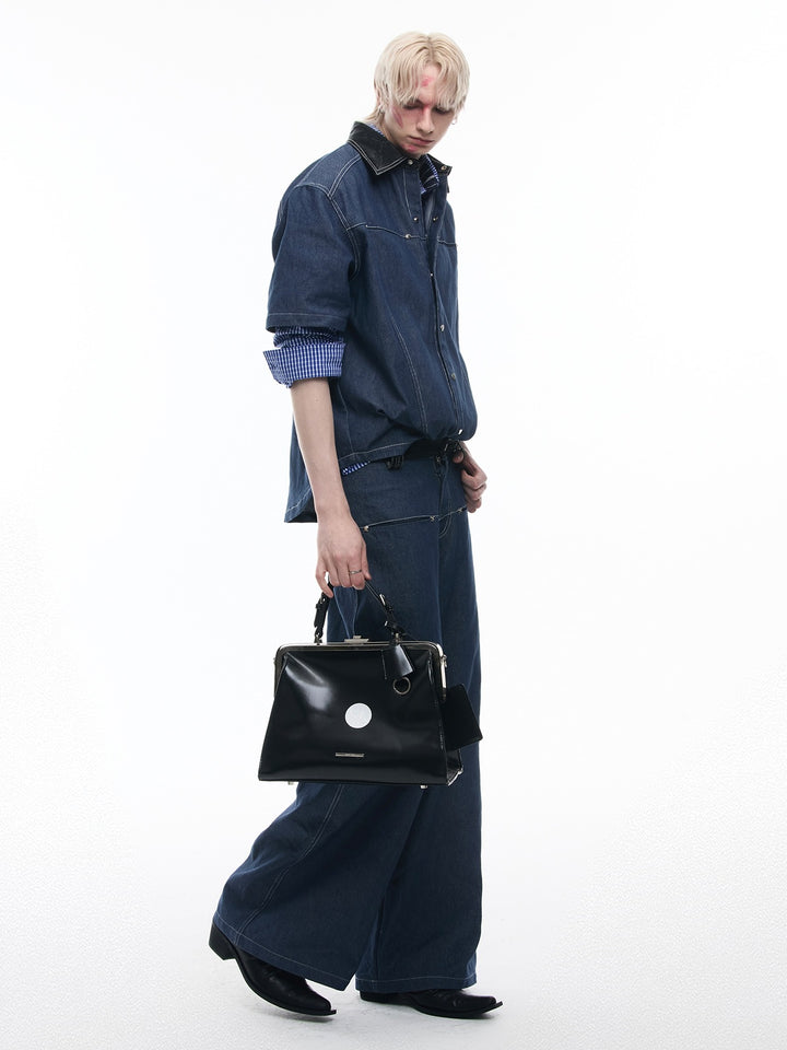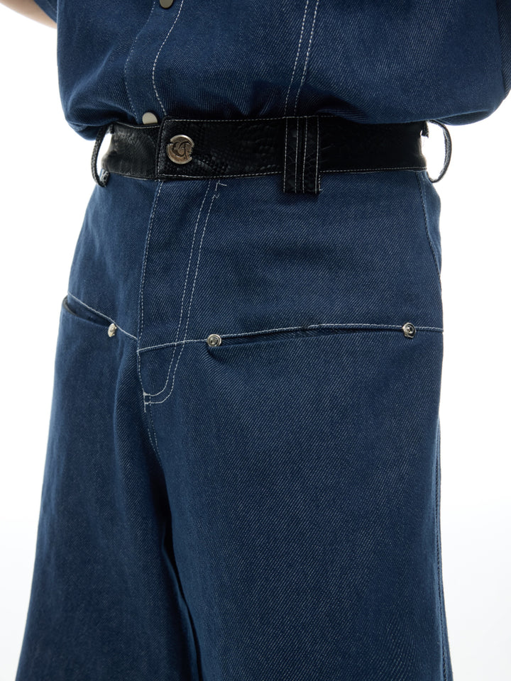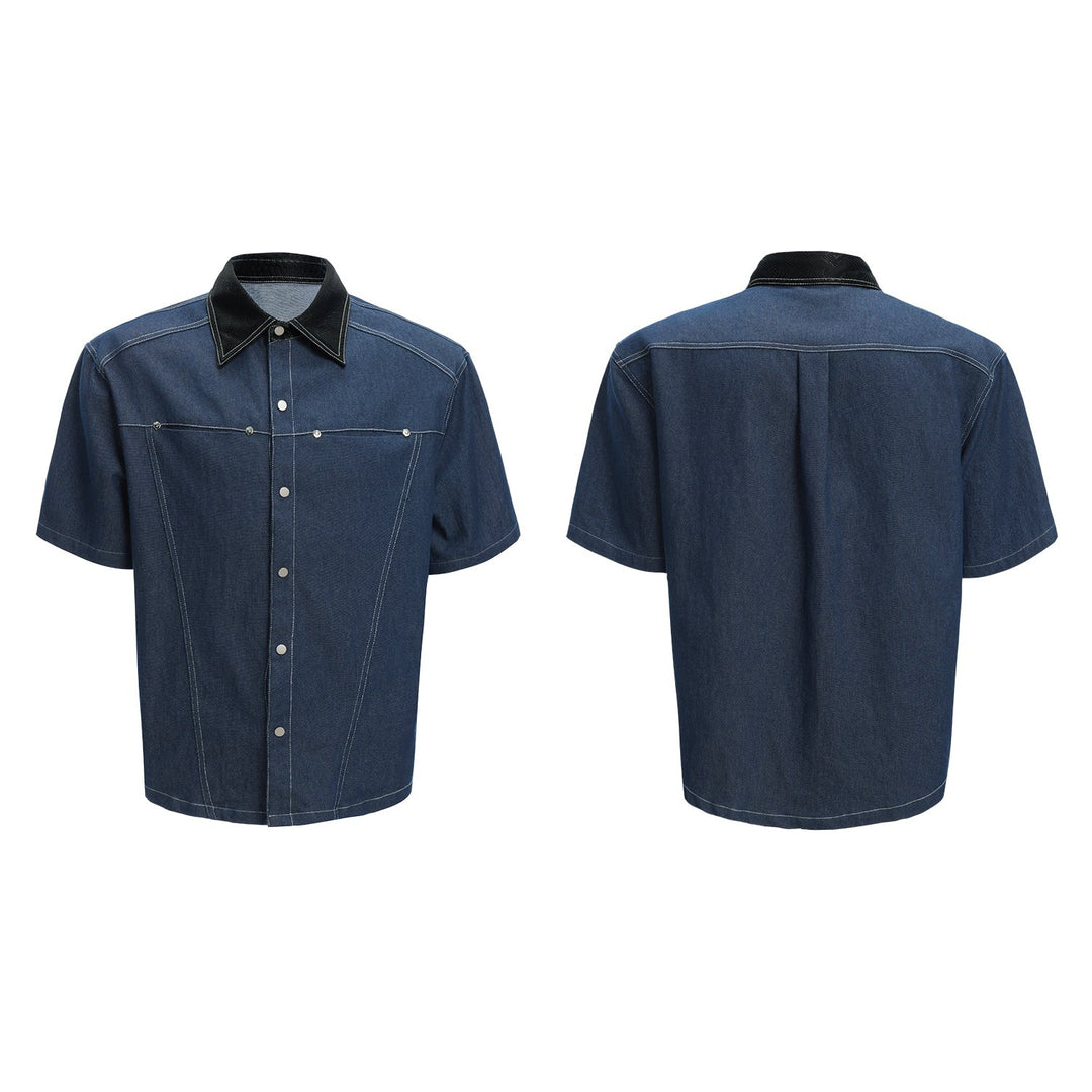 Stitching Design Denim Short-Sleeved Shirt and Pants