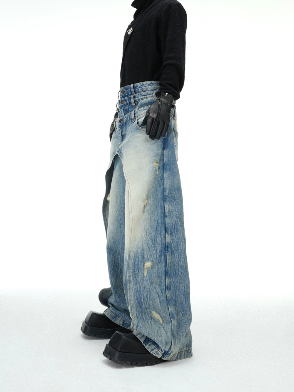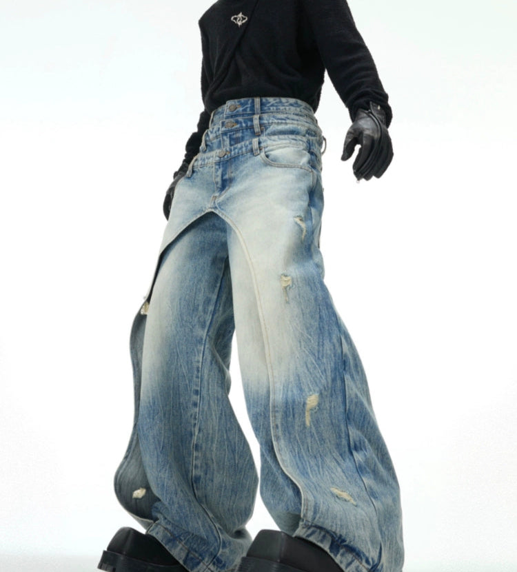 Layered Destruction Casual Jeans