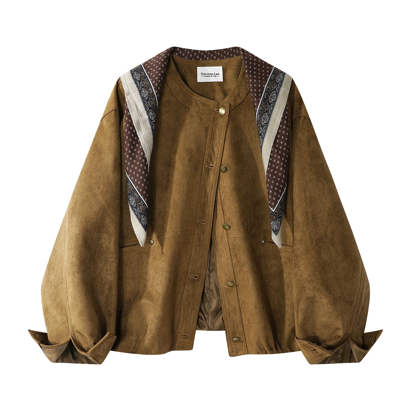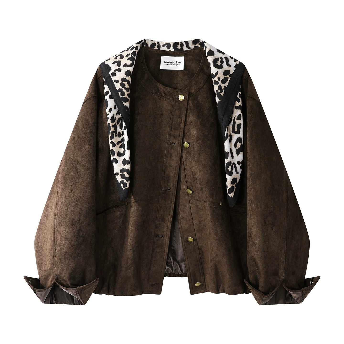 Suede Leopard Short Scarf Jacket