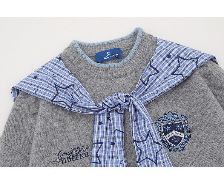 College Style Knit Shawl Sweater