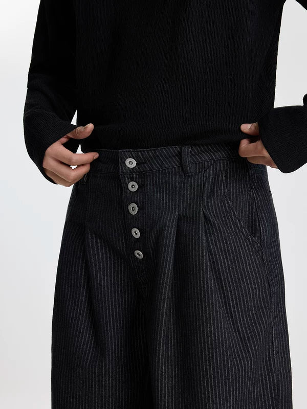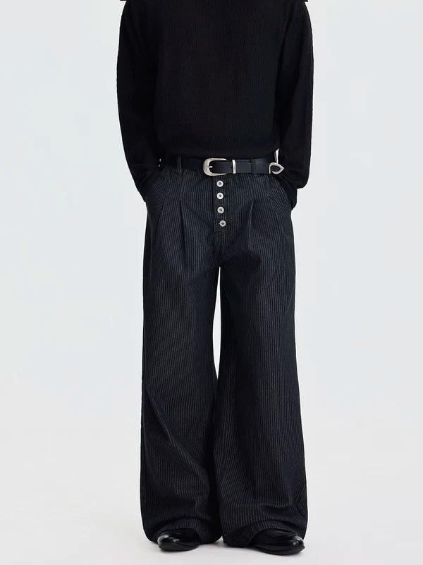 Striped Wide Leg Button Front Pants