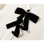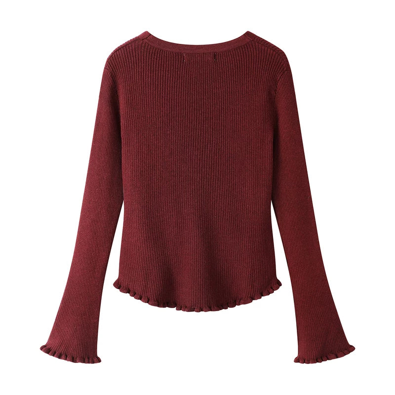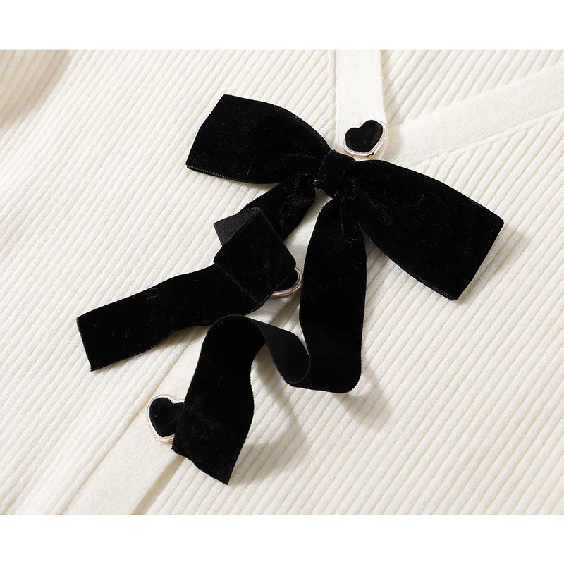 Bow Ruffle Hem V-Neck Knit Cardigan