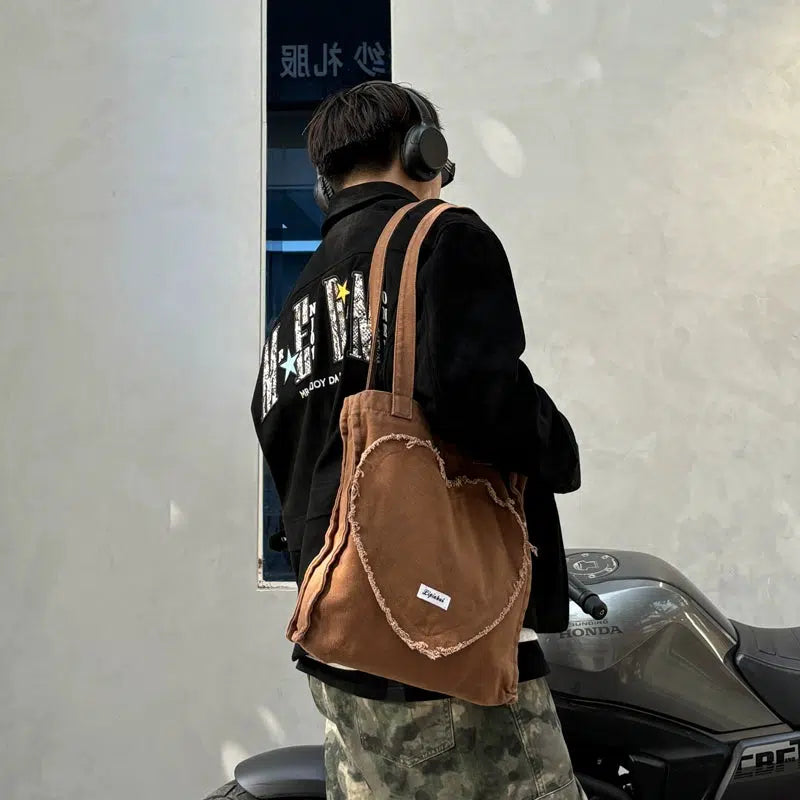 Heart-Shaped Patch Shoulder Bag