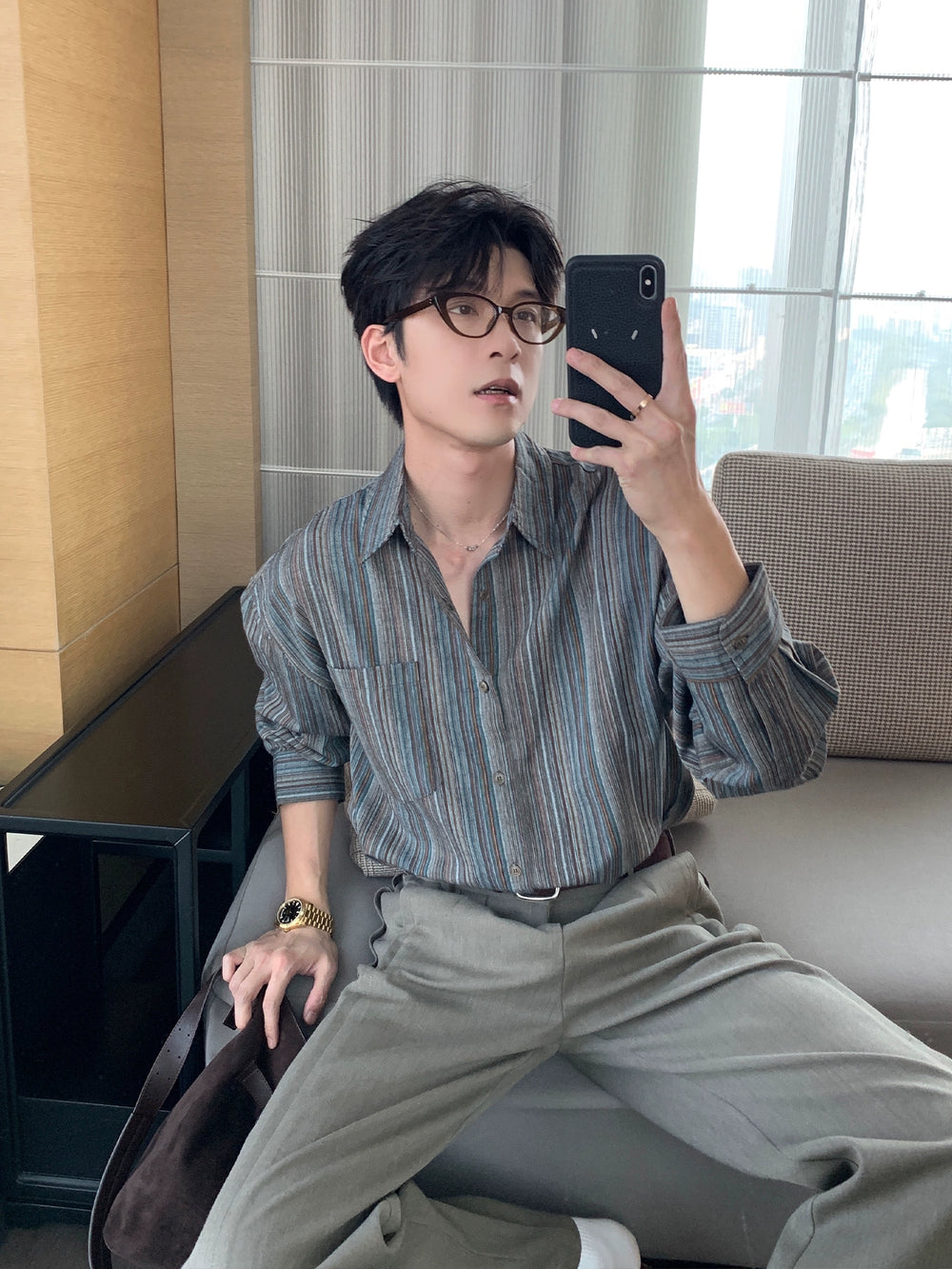 Striped Long Sleeve Lapel Shirt