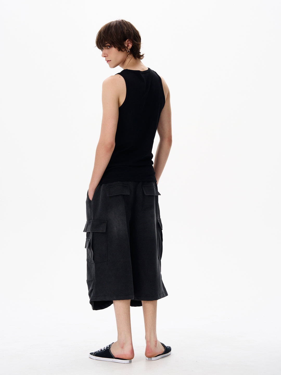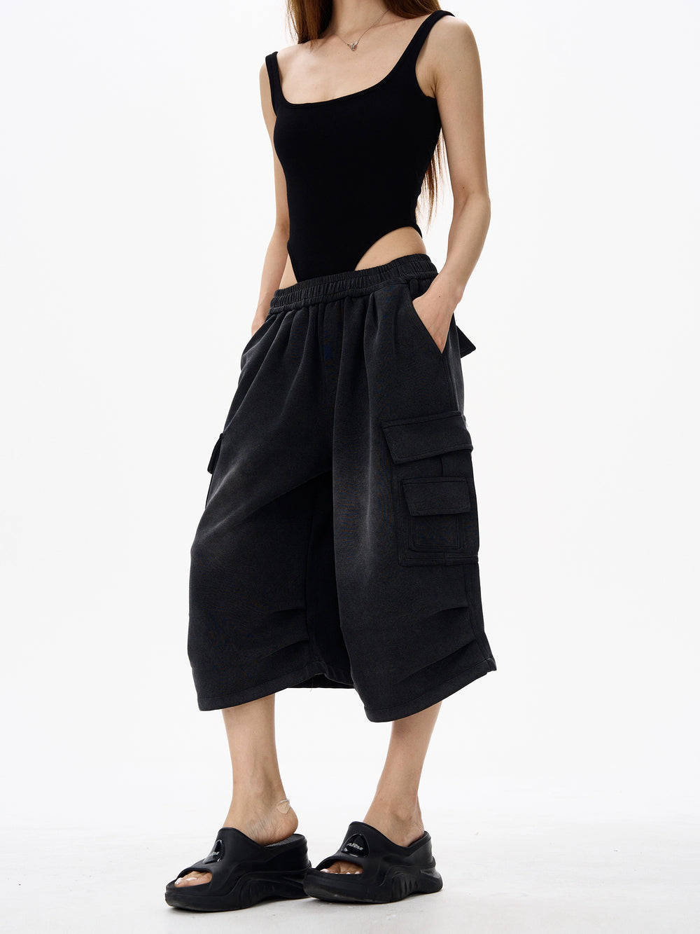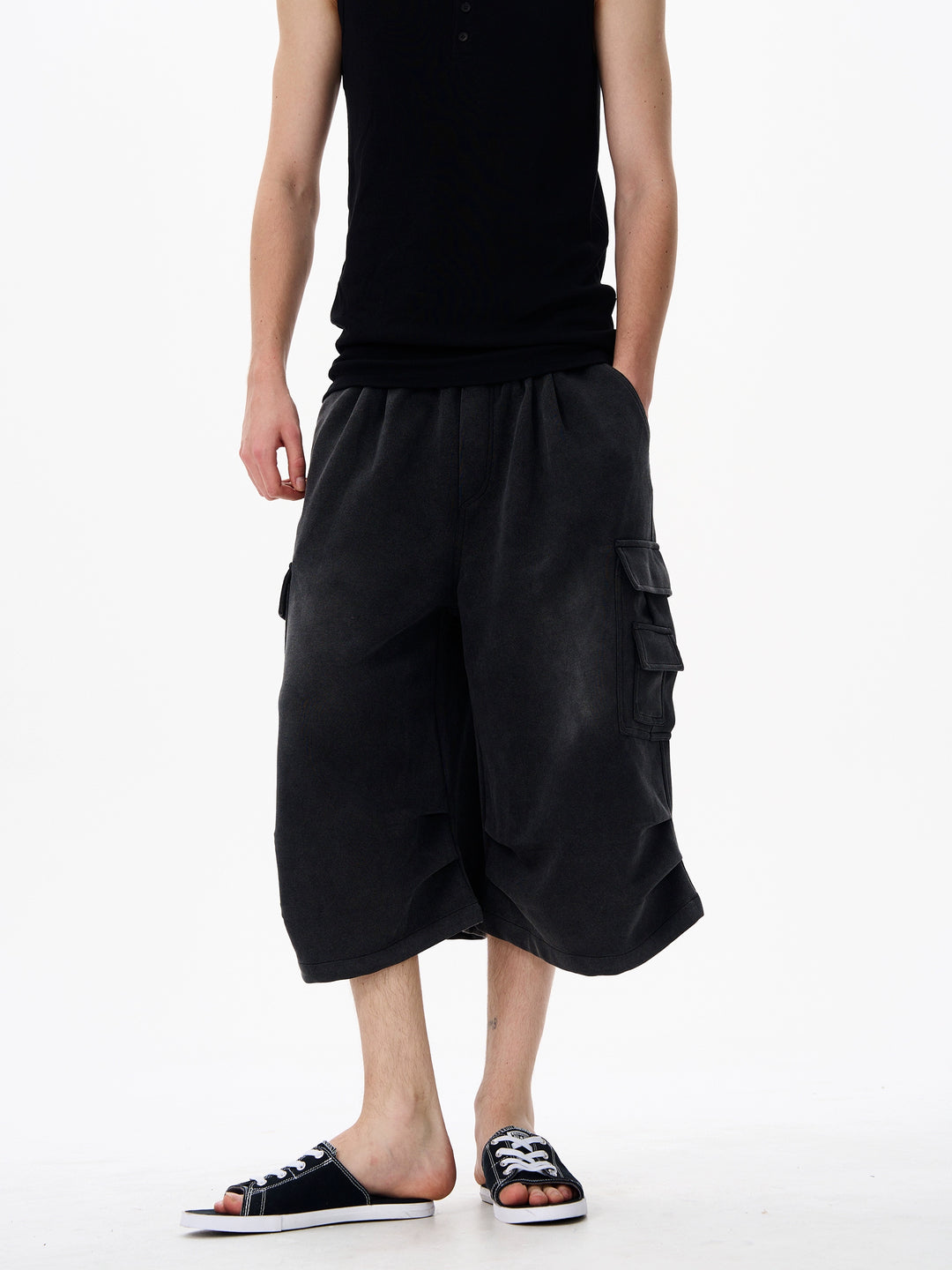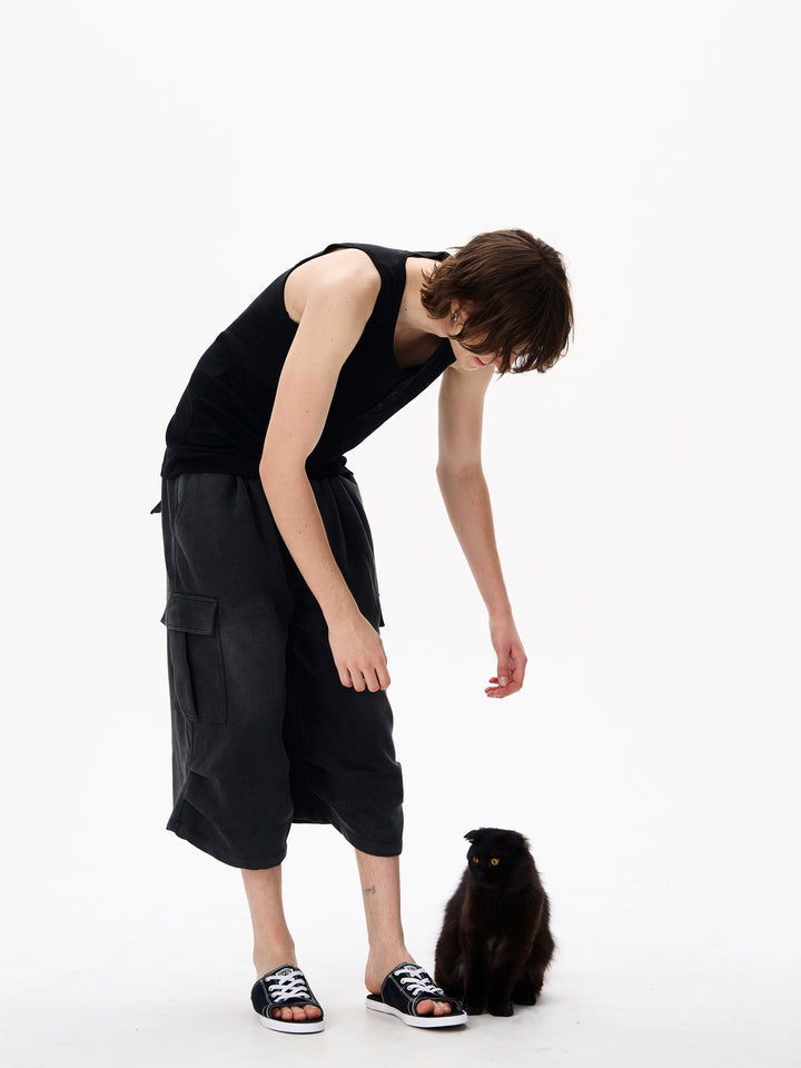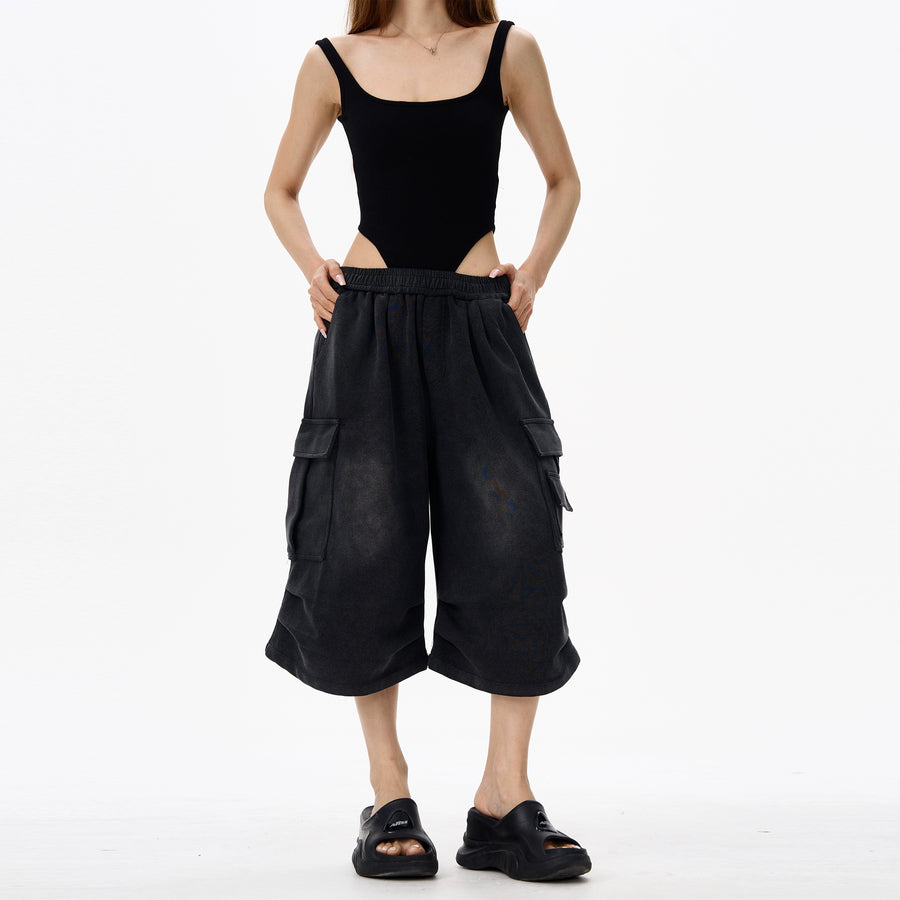 Black Wide Leg Cargo Shorts