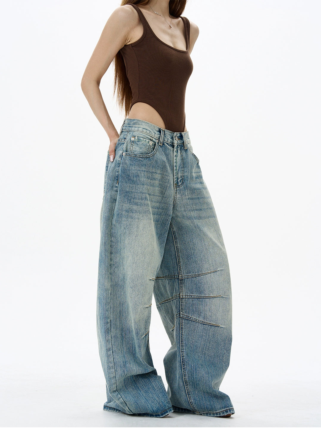 Wide Leg Bamboo Pattern Jeans