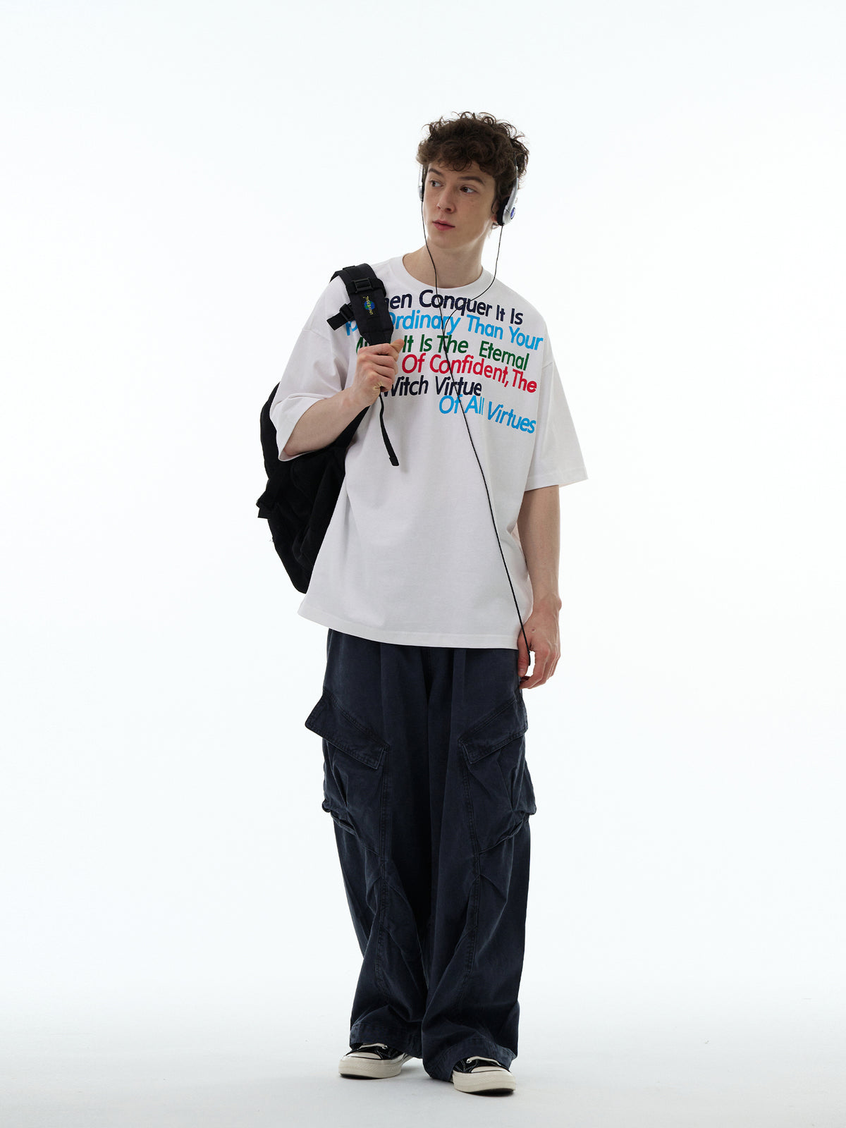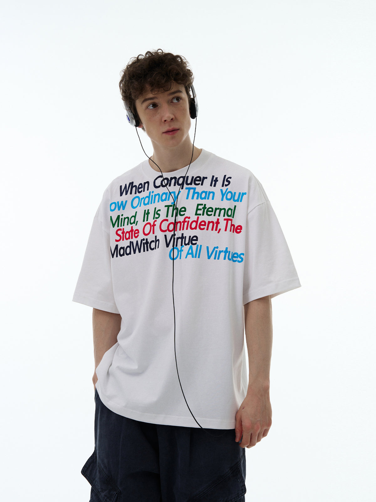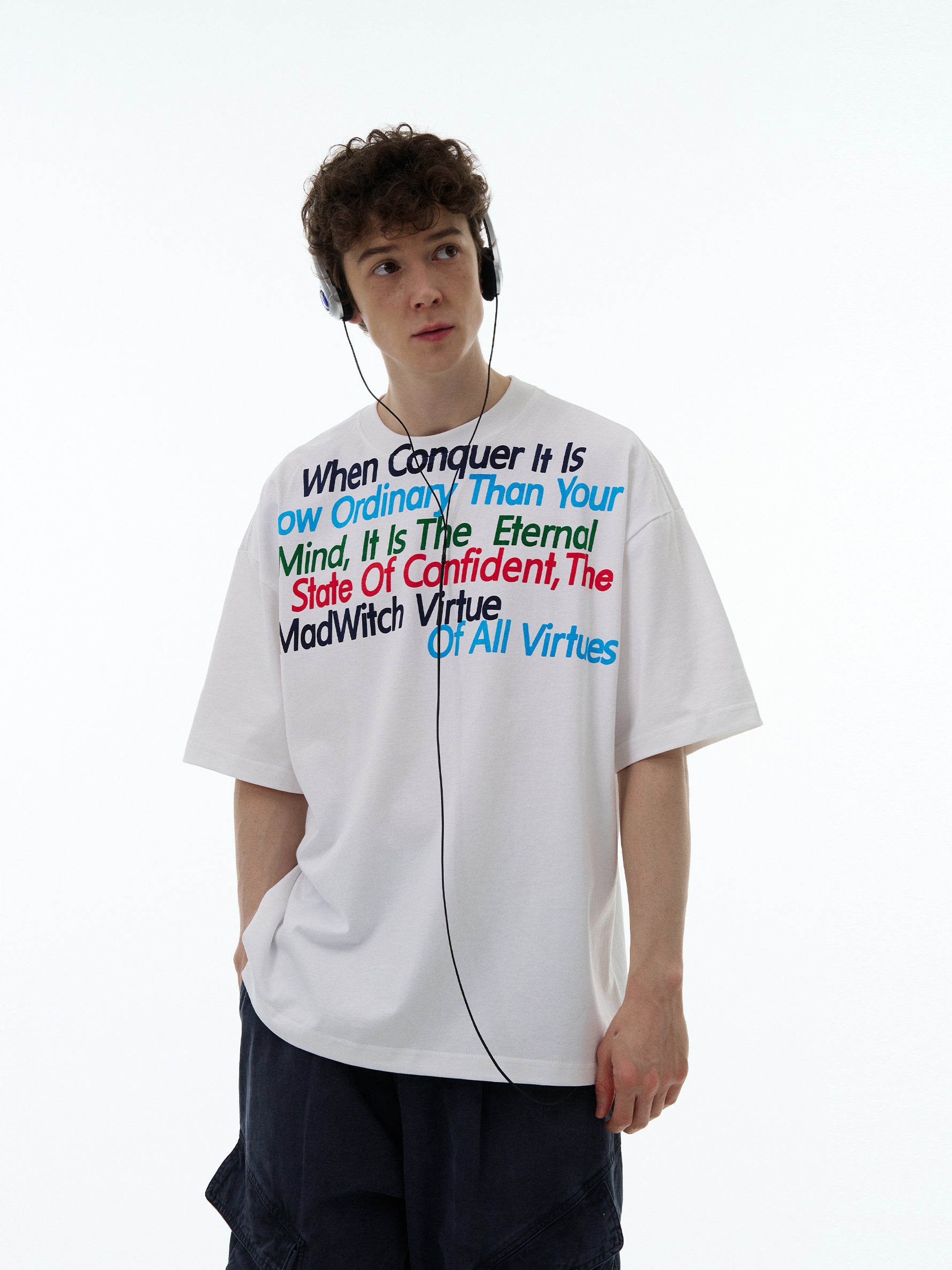 Retro Letter Print Cotton Loose T-shirt