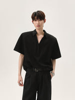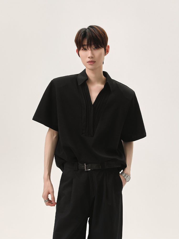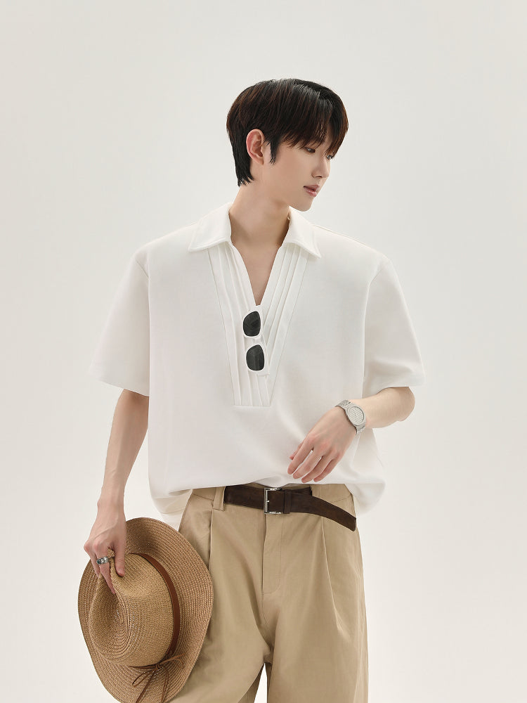 V-Neck Pleated Short-Sleeve Pullover