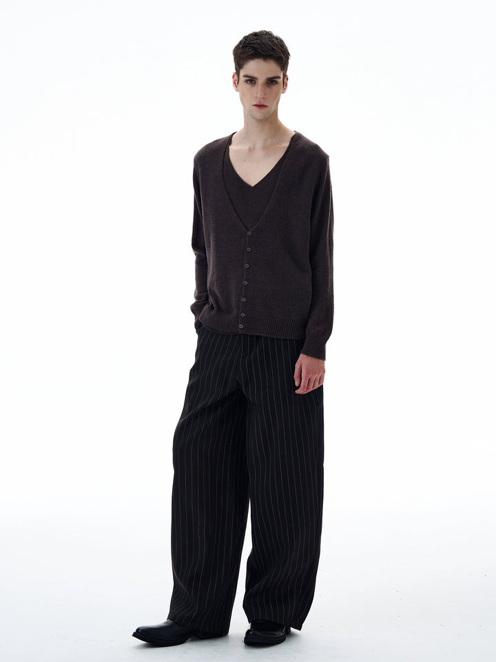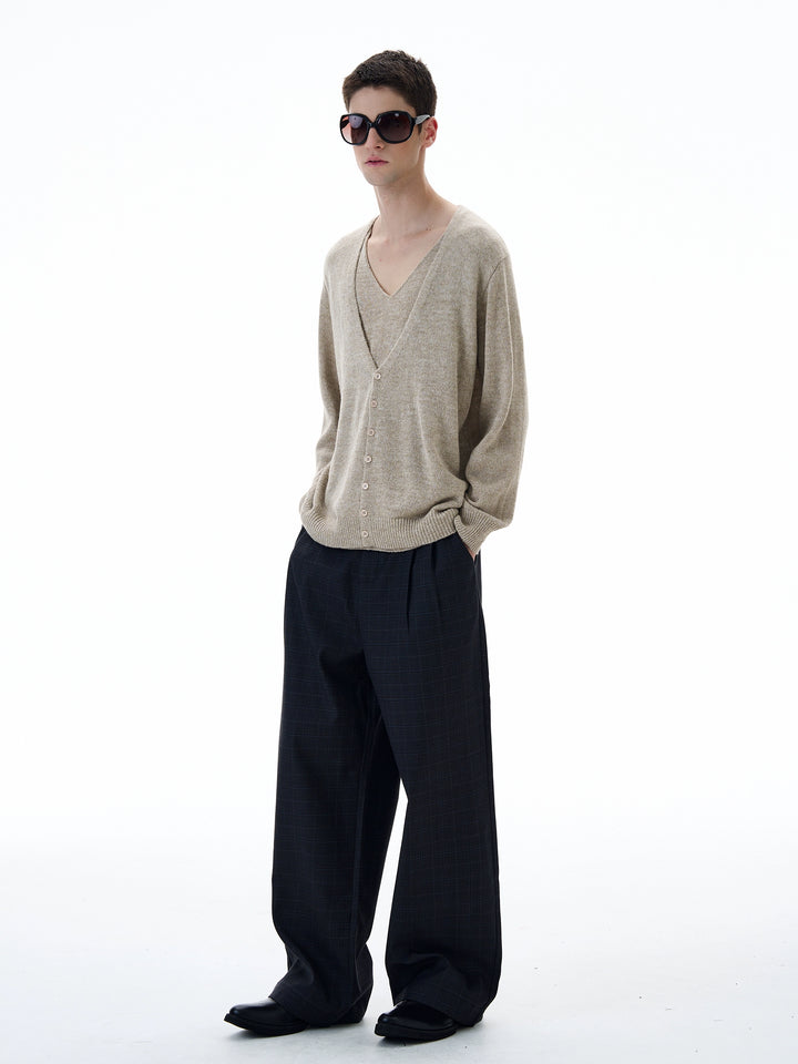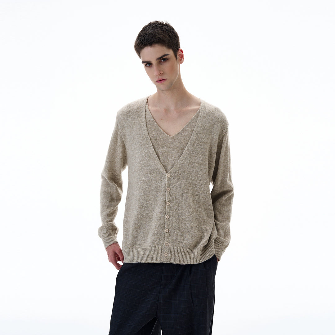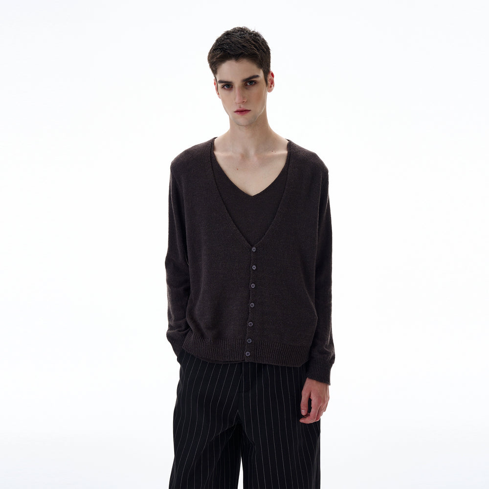 V-neck Wool Cardigan Sweater