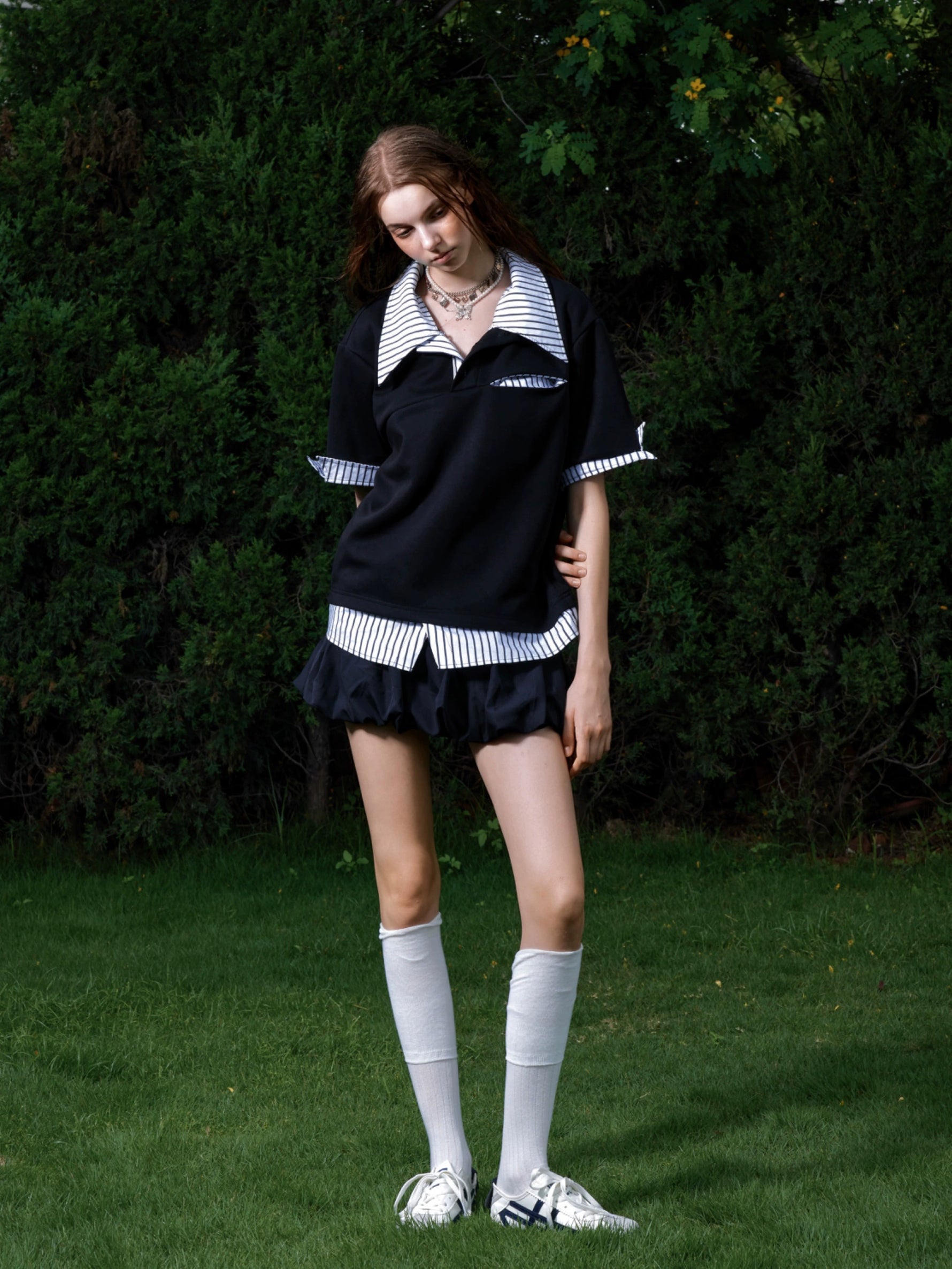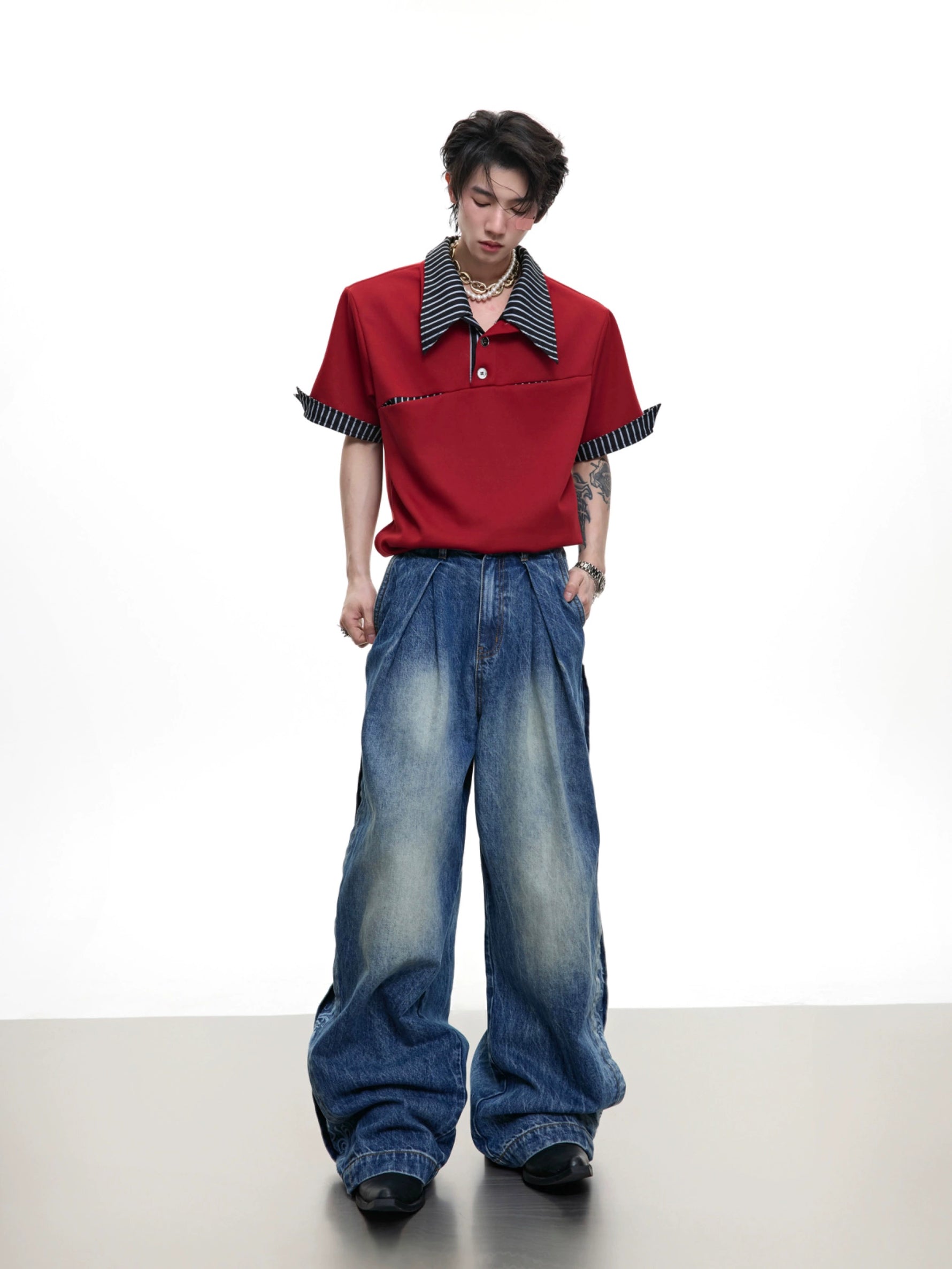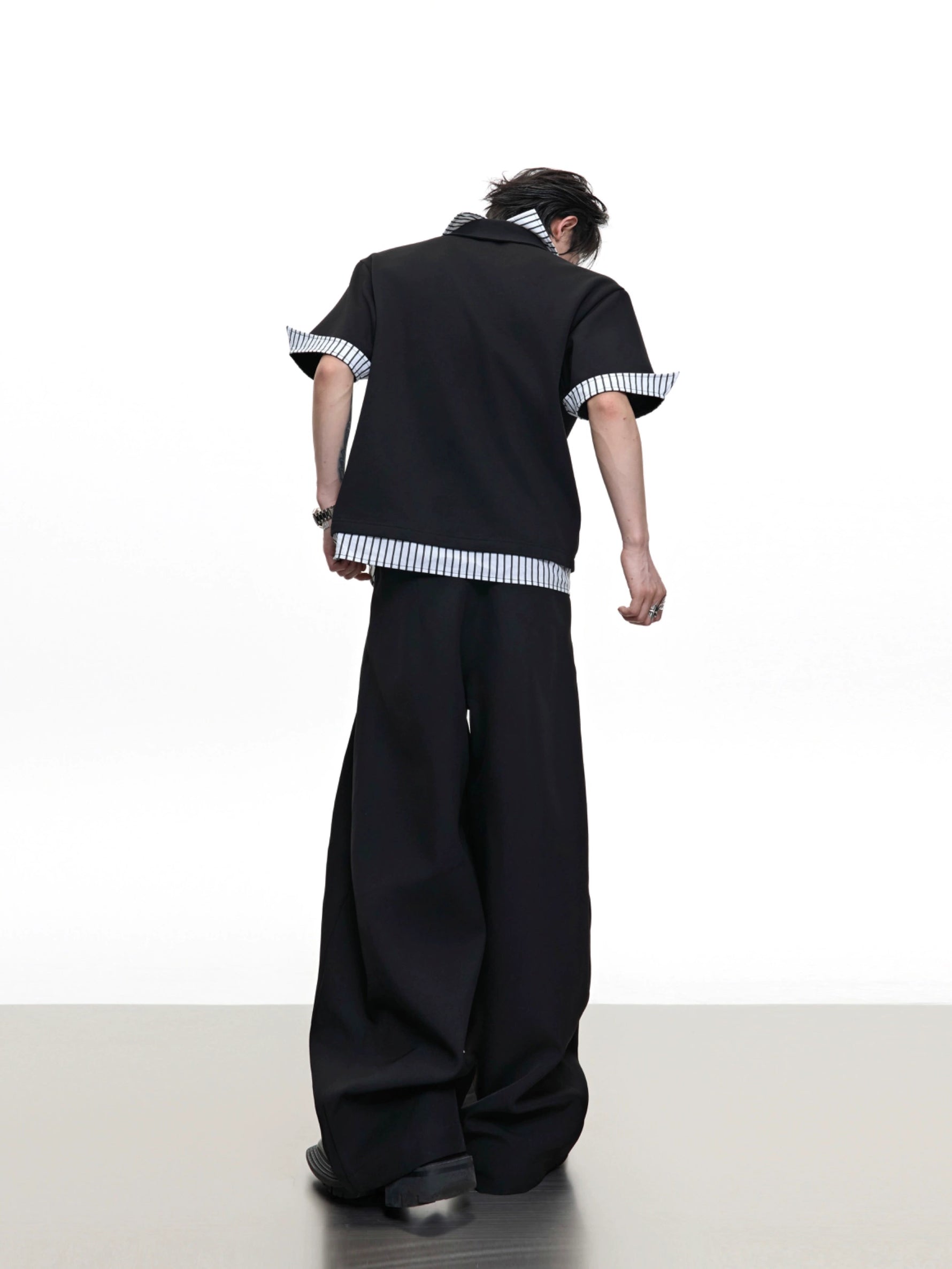Striped Deconstructed Short Sleeve Polo Shirt